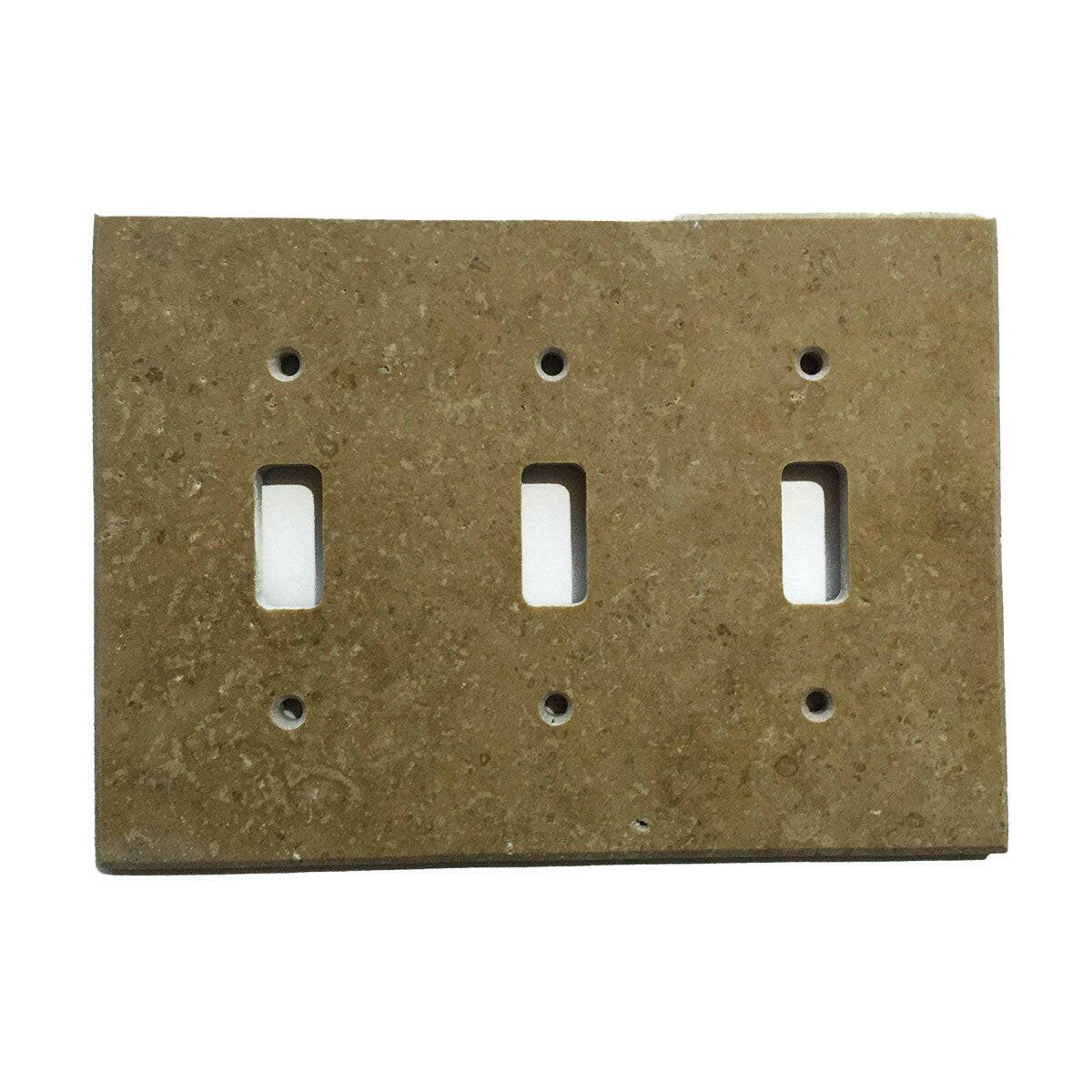 Noce Travertine Triple Toggle Switch Wall Plate / Switch Plate / Cover - Honed - 4.5 X 6.3 INCH