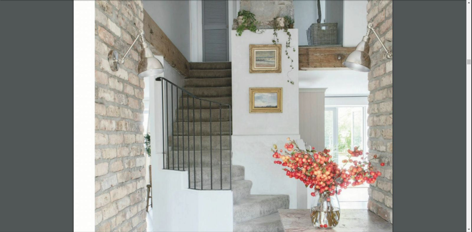 Design is in Geri O’Toole’s DNA. Her father set up a furniture retailer in Limerick named Browsers, which Geri runs today, and her late mother was an interior designer for the business. Geri’s childhood was steeped in swatches, mood boards, antiques and fortuitous saleroom finds. ‘I used to work in the shop during the holidays. I just loved being there,’ says Geri, who now also runs her own interior design business, Geri Designs, from the shop. She found her match in her husband Cathal Glynn, a joiner whose skills proved useful when the couple bought a ramshackle, single-storey cottage in Castletroy five years ago. ‘Mountshannon House was built in the 18th century and burned down in the Twenties. Our house was built on the estate after the fire,’ explains Geri. ‘The property was derelict when we first saw it. But we like a challenge, so we bought it.’ The couple – who have a four-year-old son, Finley – have transformed the house, knocking through to create an open-plan kitchen-diner/living area on the ground floor. They extended up to the roof space to create an additional floor with two bedrooms and a bathroom. ‘We didn’t need planning permission because we stuck with the original footprint,’ says Geri. Instead of adding a third bedroom upstairs, Geri reconfigured the floor plan to include a vaulted ceiling, adding unexpected drama to the living area downstairs. She designed the new staircase using urban materials that contrast with the wide oak beam, salvaged from a hotel in Cork owned by Geri’s father, and exposed brick walls, which lend a rustic warmth to the area. ‘I wanted to balance the clean lines and modernity with natural materials – I don’t like too much perfection,’ says Geri. Cathal made sash windows using the original weights, and the existing brick fireplace downstairs was restored. ‘We tried to preserve as much of the old building as possible. I love these original features; they give the house soul,’ says Geri. An understated palette underpins the calm, light feel of the home. Monochrome tranquillity abounds upstairs, where a roll-top bath sits against walls papered in a motif of swirling clouds. ‘I love the way the wallpaper makes me feel as though I’m floating up on high.’ The pale backdrop is warmly sprinkled with antiques and heirlooms gathered by Geri and Cathal over the years. Silvered mirrors illuminate the sitting area, soft Persian rugs adorn the floors, and modern artworks by Irish artists, such as Markey Robinson, enhance the rooms. ‘The way we decorate has changed so much. People used to stick to one look, but nowadays we’re more open to mixing and matching,’ says Geri. Nearby, a set of dilapidated outbuildings are in need of attention. Geri and Cathal have various ideas: the barns might become a holiday rental, or a workshop. Whatever their decision, one thing is clear: a transformation is in store.