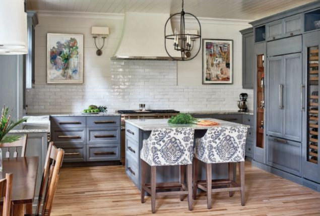 Ā Designer Heather Garrett is no stranger to design challenges. So when her Internet entrepreneur clients called on her to redesign their newly purchased Tuscan style estate in Chapel Hill, she took on the project with gusto. āThis young couple had a really relaxed approach to life, living with dogs and had a baby on the way,ā Garrett says. āThey purchased this fully furnished estate that was dripping with Tuscan style. Think heavy furniture, deep walls, and hanging tapestries. They wanted instead to be sunny, fresh, and chic, but in appropriate measure for the traditional architecture.ā The couple both graduated from the University of North Carolina at Chapel Hill but had since settled in Durham. With a new baby on the way, a travel-heavy work schedule for the husband, and a recent windfall, they both agreed that moving back to Chapel Hill would provide the peace of mind and way of life they were seeking. The home sits on the fairway of the Chapel Hill Country Club, and planning for a growing familyĀ this idyllic property was a perfect choice. The plans forthe nursery were under way in their current home, so when they decided to move, the clock was ticking to bring these plans up to speed in the new home and prepare for baby. āThere was a chemistry there from the get-go with these people,ā Garrett says. āAnd we grew together slowly on projects as we hit benchmarks that made it clear I really understood their needs. We have a great trust now.ā Once the nursery was completed and their sweet baby boy was introduced into the world, they asked Garrett to get to work on the kitchen and living room so that they could spend time together as a family in those spaces. With the parents working from home and a family that loved the outdoors, enjoying a very casual lifestyle, Garrettās goal was to create a home that transitioned seamlessly from work to play. Over the next three to four years, she was able to create a haven for this family of four, working room by room to perfect their living lifestyle ā and ending, appropriately, with another nursery for their second babyāa girl.
