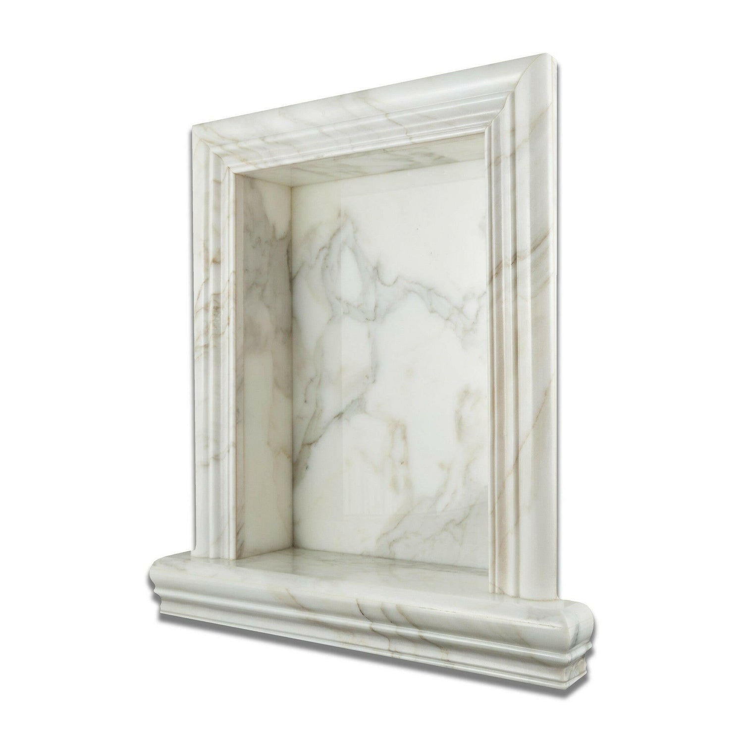 Ā Ā Premium Quality Italian Calacatta GoldĀ Marble Ā HonedĀ Hand-Made Custom Shampoo Niche / Shelf -Ā SMALL