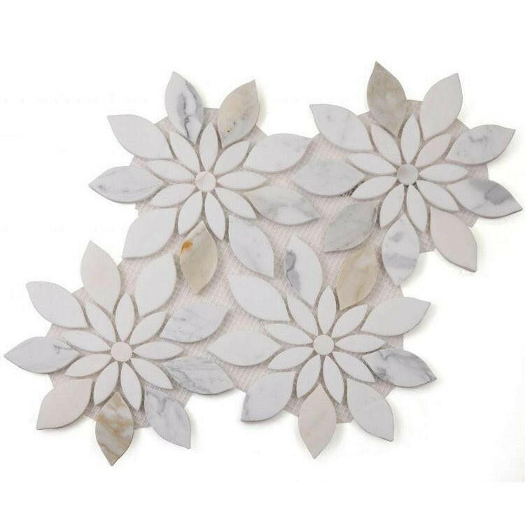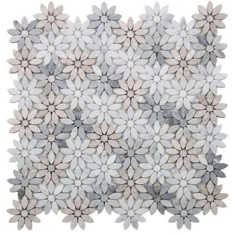 Aster Eura Wood Flower Marble Mosaic Tile: Nature-Inspired Elegance in Timeless Marble