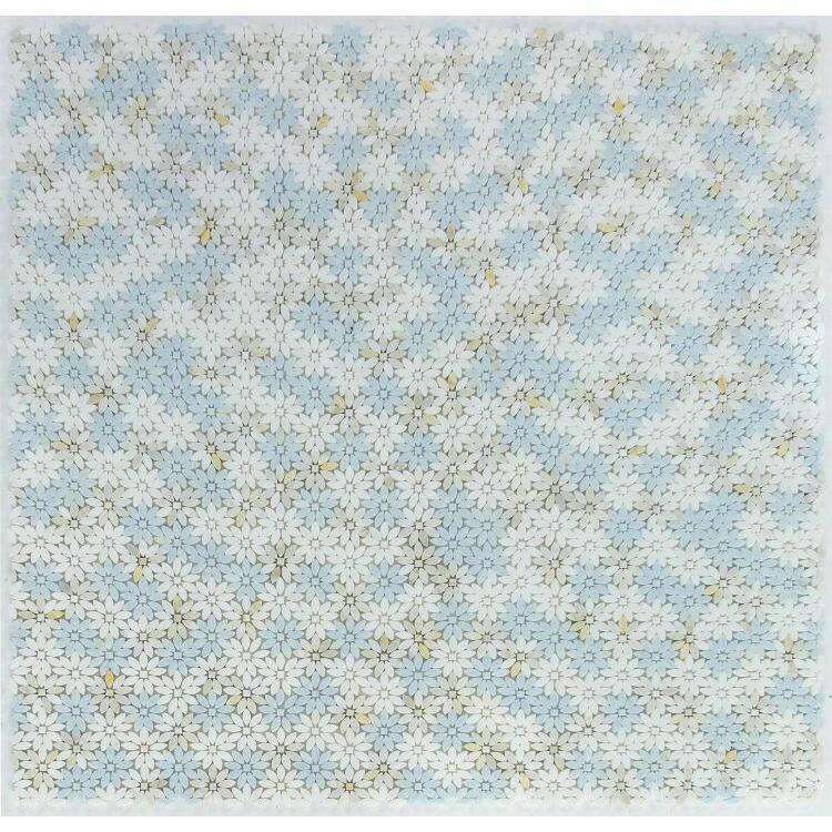 Meticulously crafted from premium natural marble, each tile showcases unique veining and color variations, ensuring a one-of-a-kind installation. The soft green petals contrast beautifully with crisp white marble, forming an intricate floral design that evokes a sense of serenity and sophistication.
