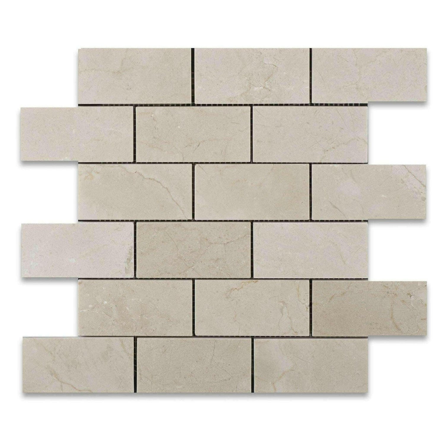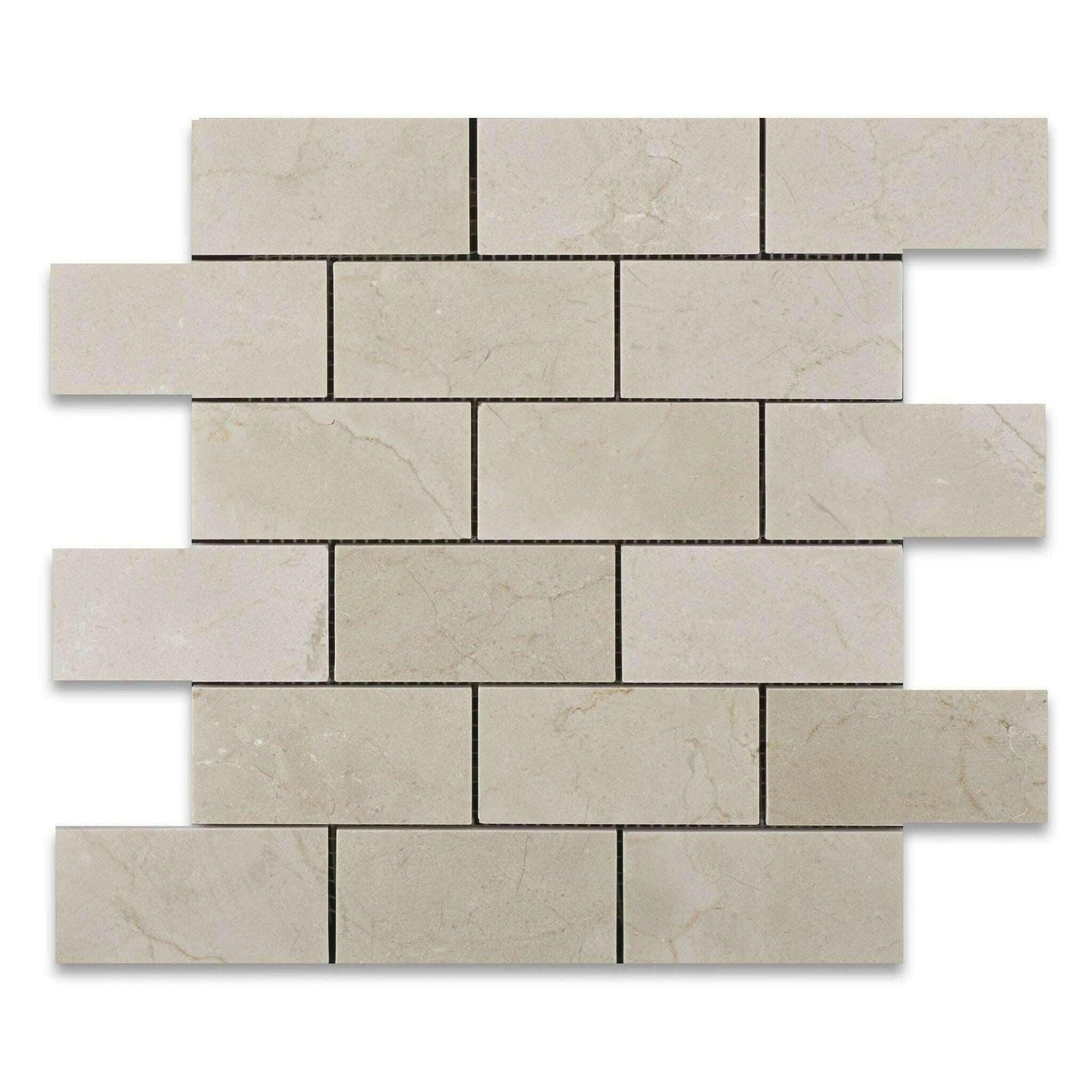 Premium (SELECT) Quality 2" X 4" SPANISH CREMA MARFIL MARBLE HONED & BEVELED BRICK MOSAIC TILE