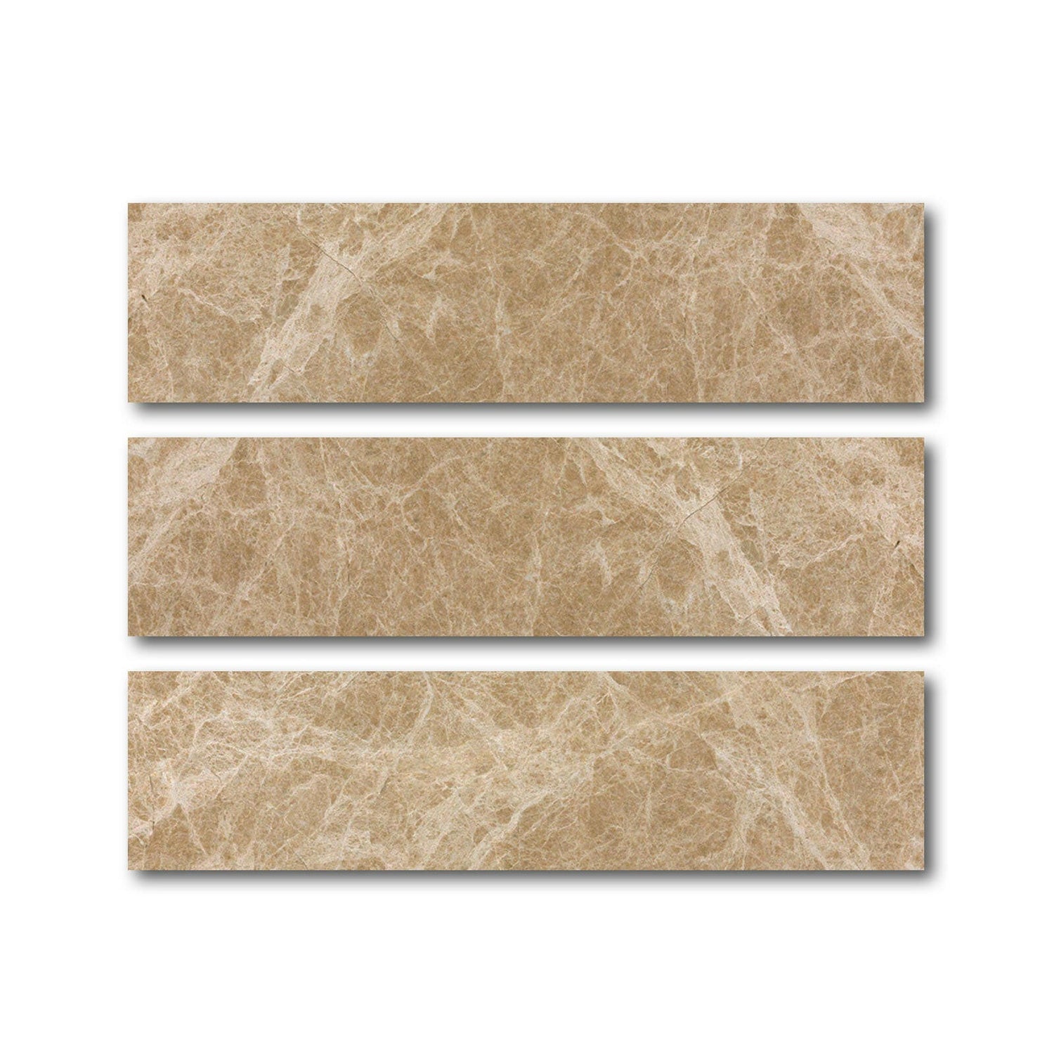 Made from premium Emperador Light marble, this 6x18 tile features a soft beige base layered with creamy tan and subtle white veining. The polished surface creates a high-gloss effect that reflects light, enhances color depth, and brings a clean, luxurious feel. As a result, it gives your design a radiant, inviting tone.