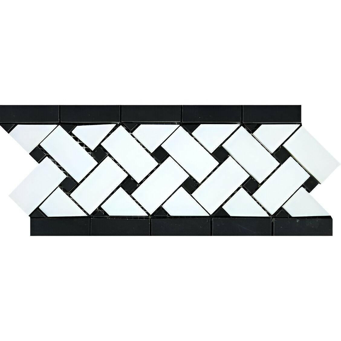 Premium Quality GREEK THASSOS WHITE MARBLE POLISHED BASKETWEAVE W / BLACK DOTS BORDER