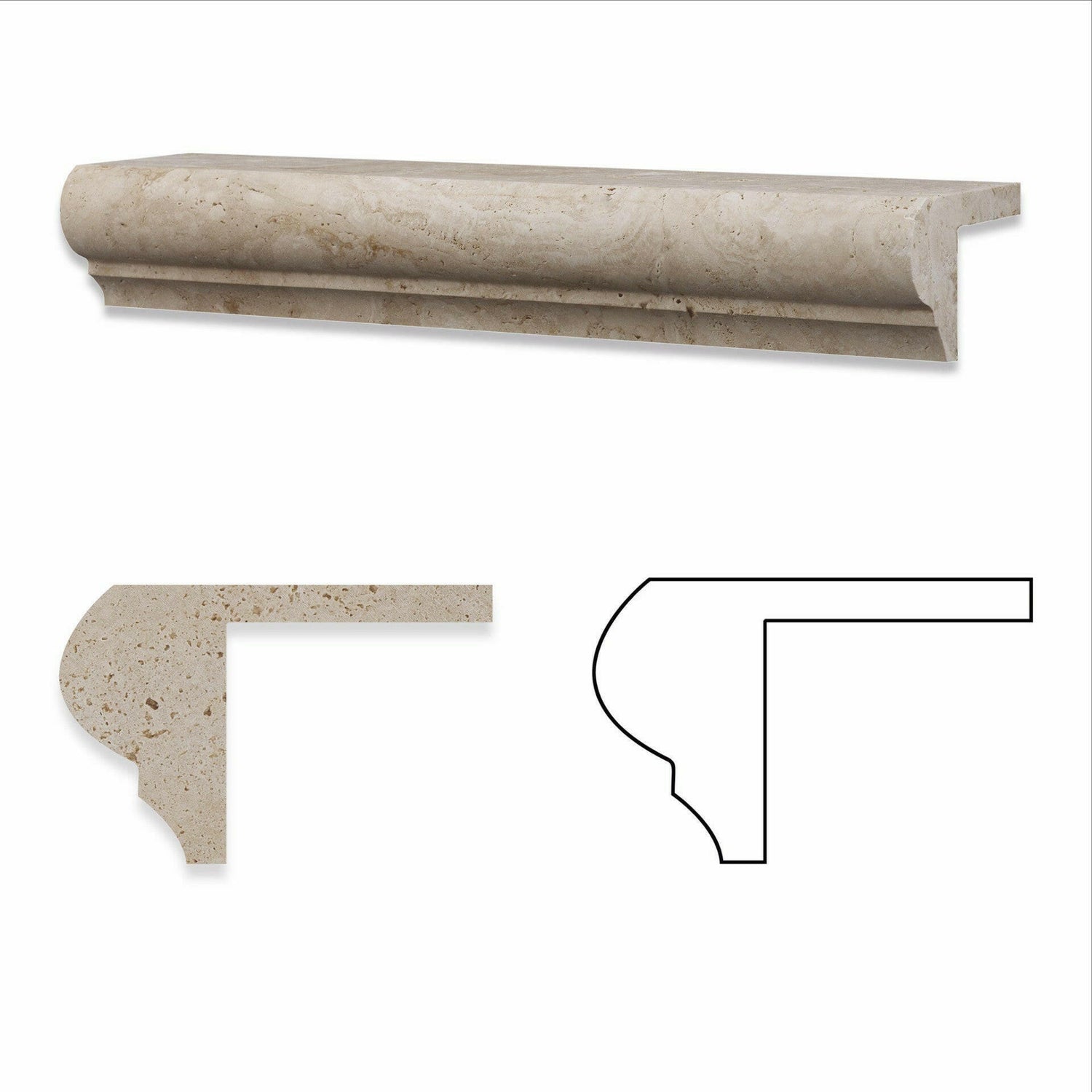 Ā Ā Premium QualityĀ 2" x 3" x 12"Ā LIGHT / IVORY TRAVERTINEĀ Ā CORNER-OGEE STAIR TREAD TRIM PIECE HONED