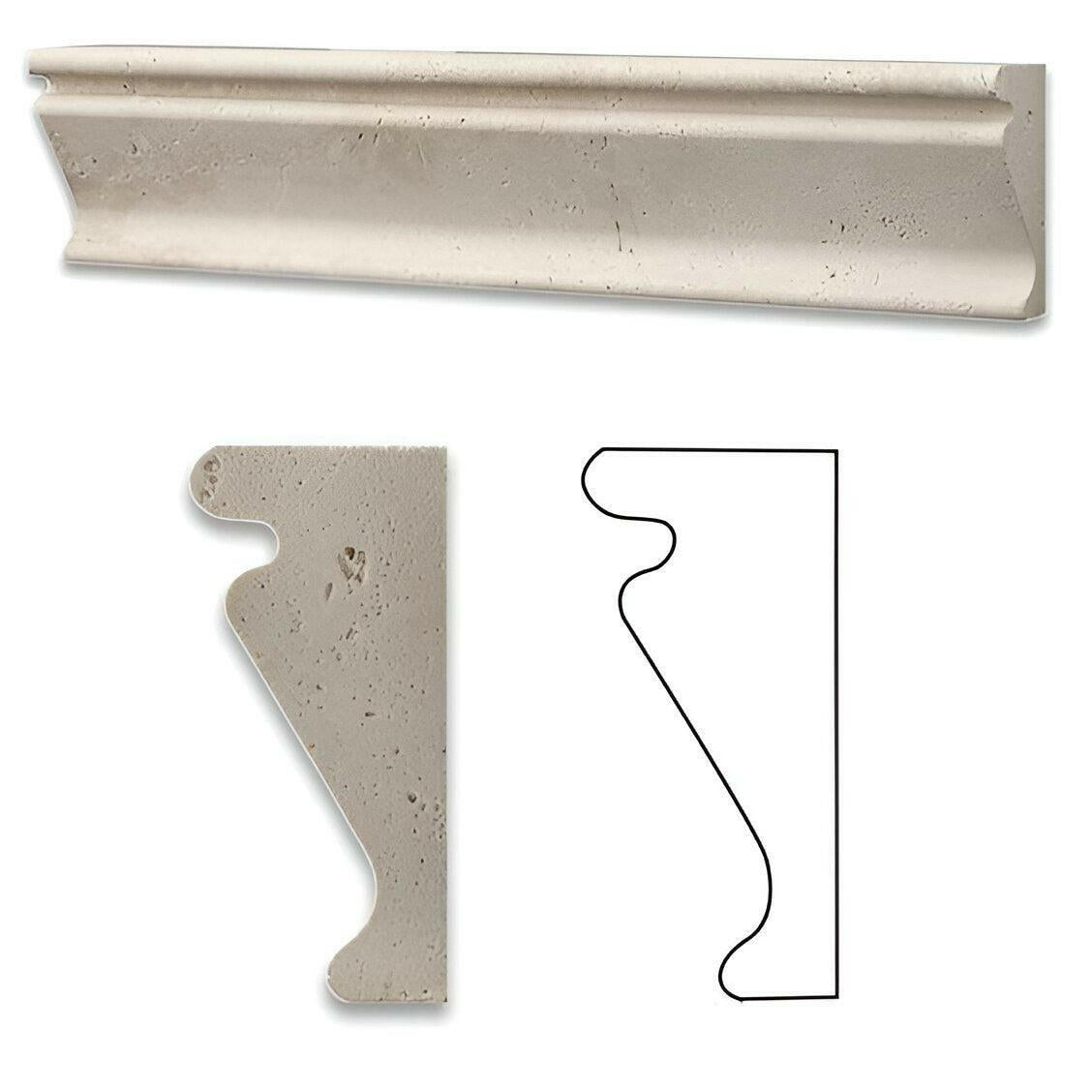 Ā Ā Premium QualityĀ LIGHT / IVORY TRAVERTINEĀ 2" X 12" HONED & UNFILLEDĀ SINGLE-STEP, OG-1 CHAIR RAIL TRIM / MOLDING