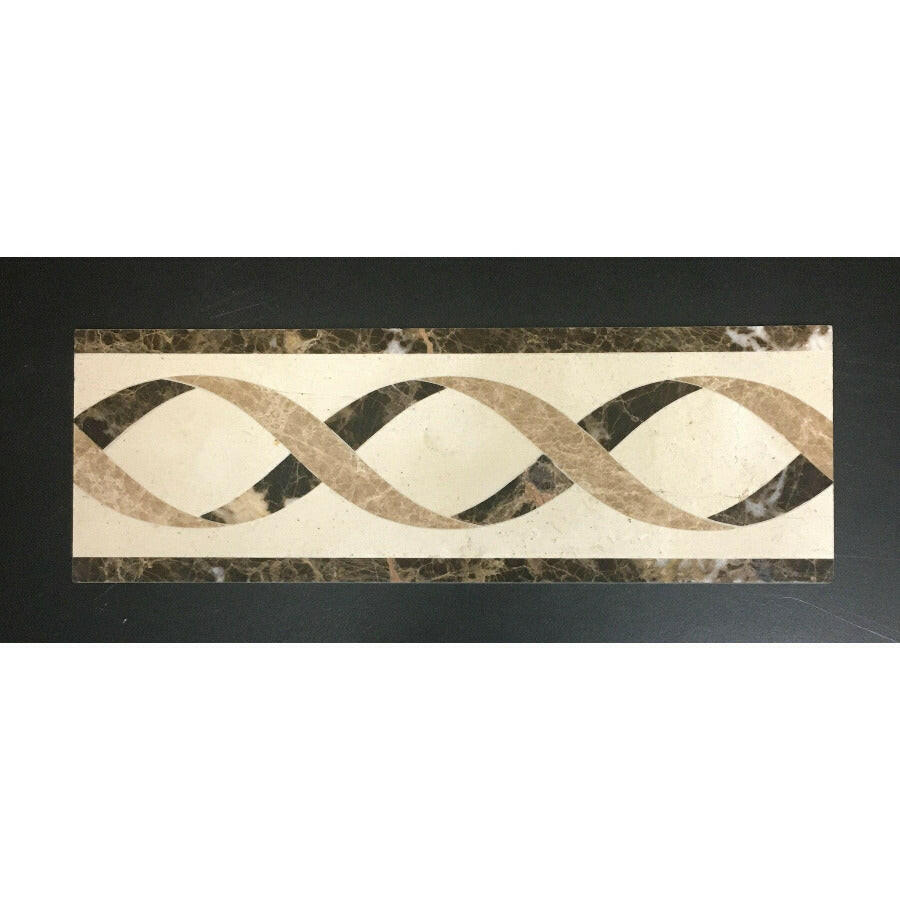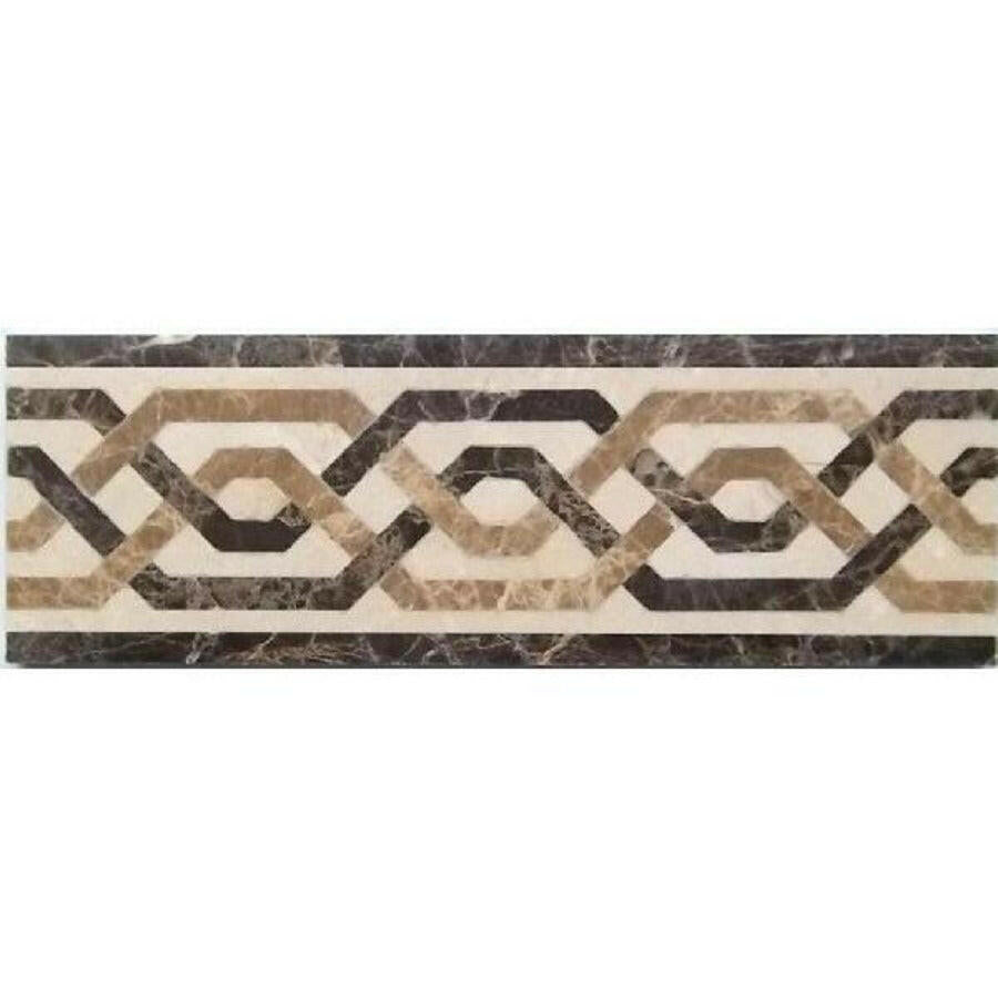 Ā Ā Premium Quality DAPHNE 4 x 12 MARBLE WATERJET BORDER -Ā POLISHED (EMPERADOR DARK-EMPERADOR LIGHT-CREMA MARFIL-)