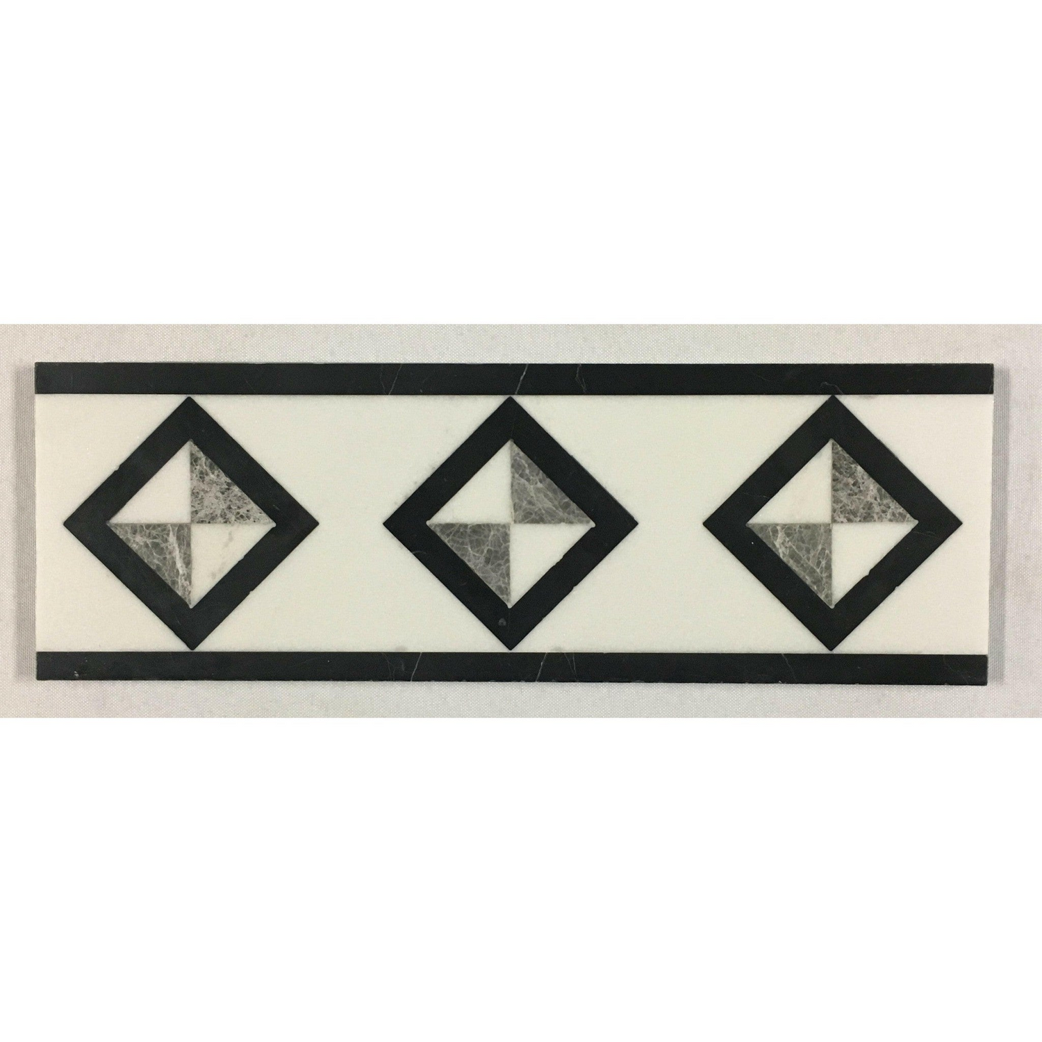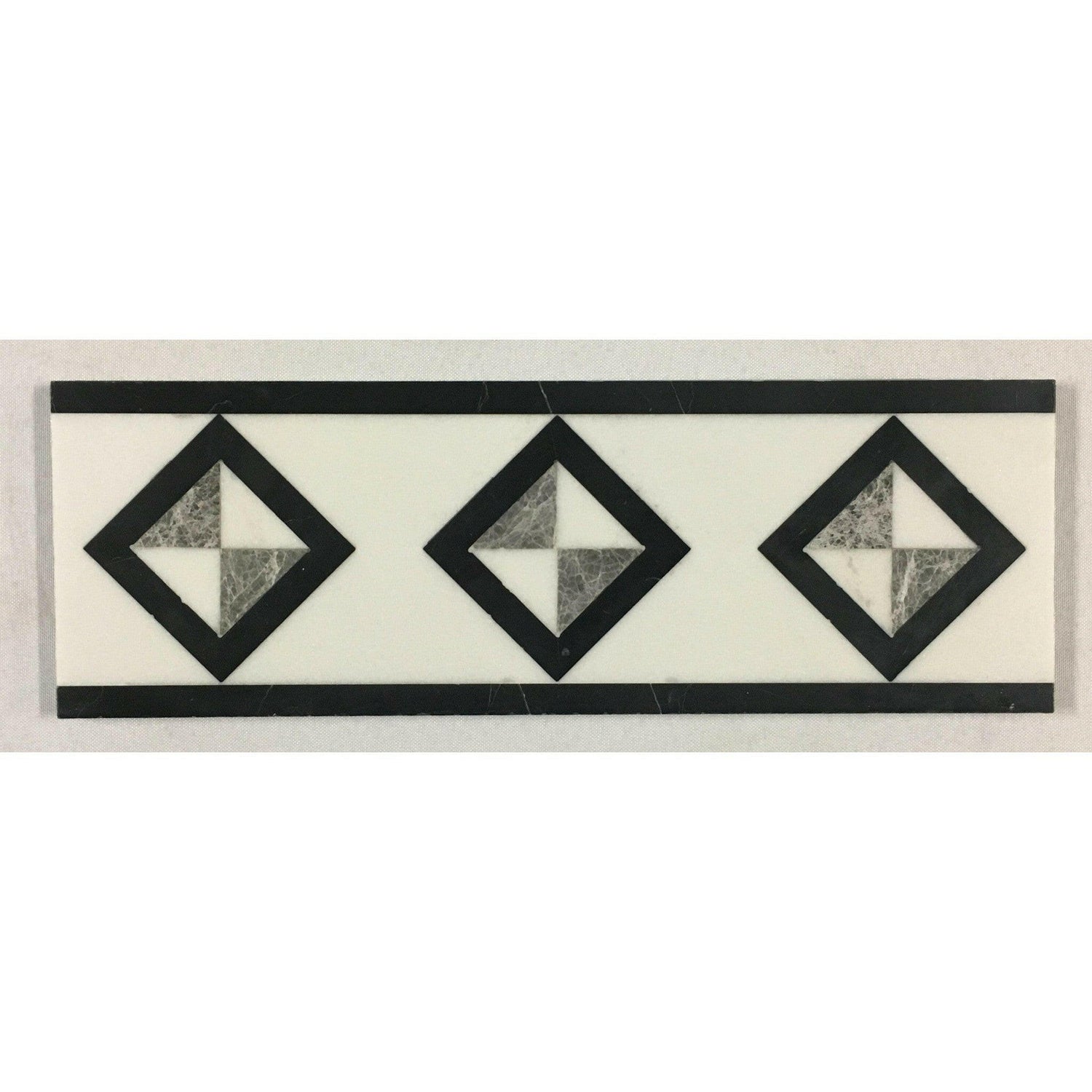 Ā Ā Premium QualityĀ GALLIPOLI 4 x 12 MARBLE WATERJET BORDER -Ā POLISHED (BLACK MARBLE-THASSOS WHITE)