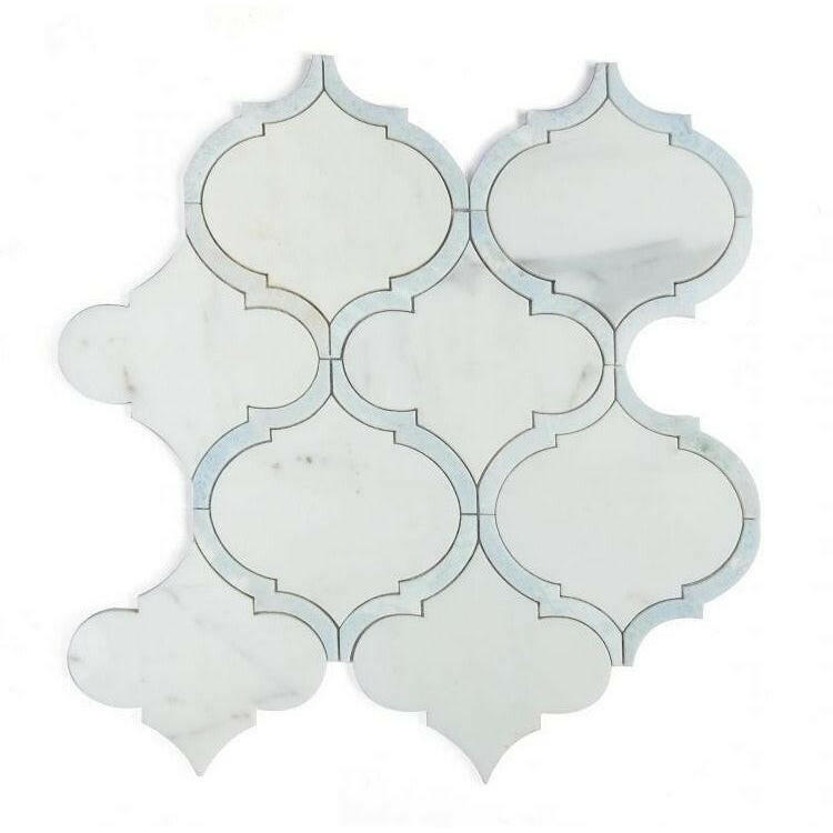 Ā Ā Premium (SELECT)Ā Quality WATERJET ROUND MARBLE POLISHED (Carrara White with Blue Grey and Crema Marfil RoundĀ ) MOSAIC TILE