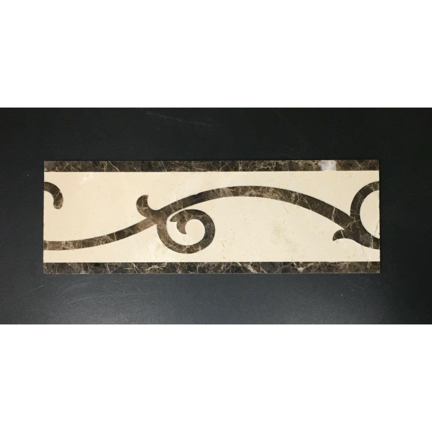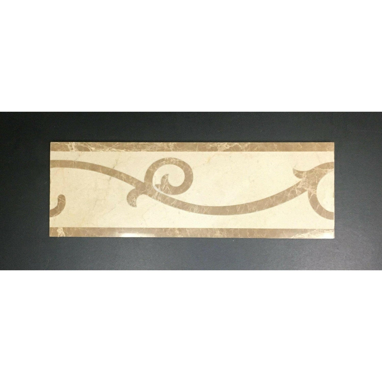 Ā Ā Premium QualityĀ TIJUANA 4 x 12 MARBLE WATERJET BORDER -Ā POLISHED (EMPERADOR DARK-CREMA MARFIL)