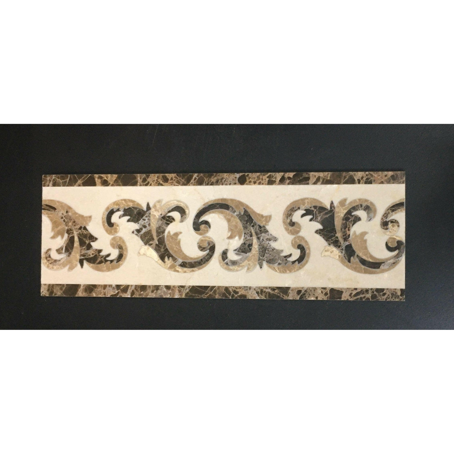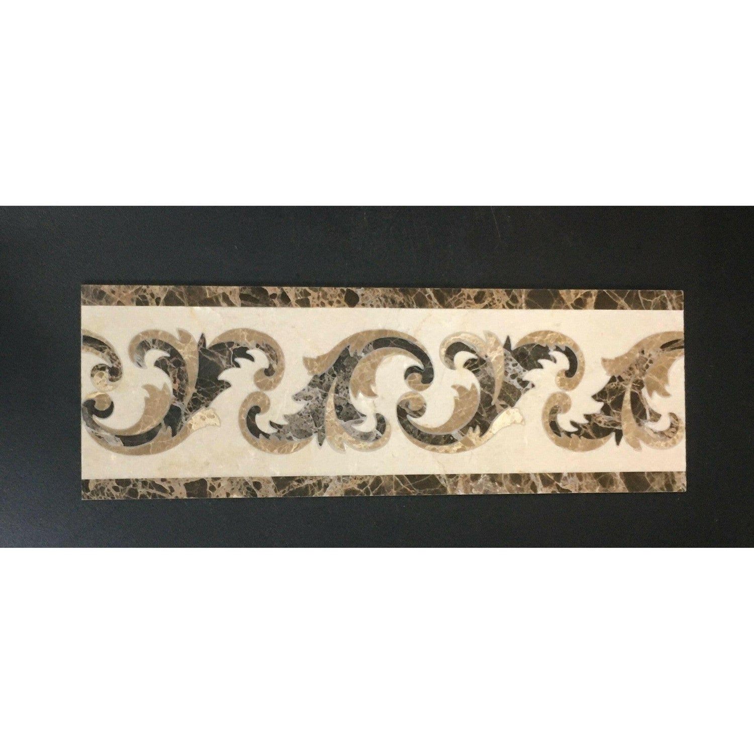 Ā Ā Premium QualityĀ BOUGHĀ 4 x 12 MARBLE WATERJET BORDER -Ā POLISHED (EMPERADOR DARK-CREMA MARFIL)
