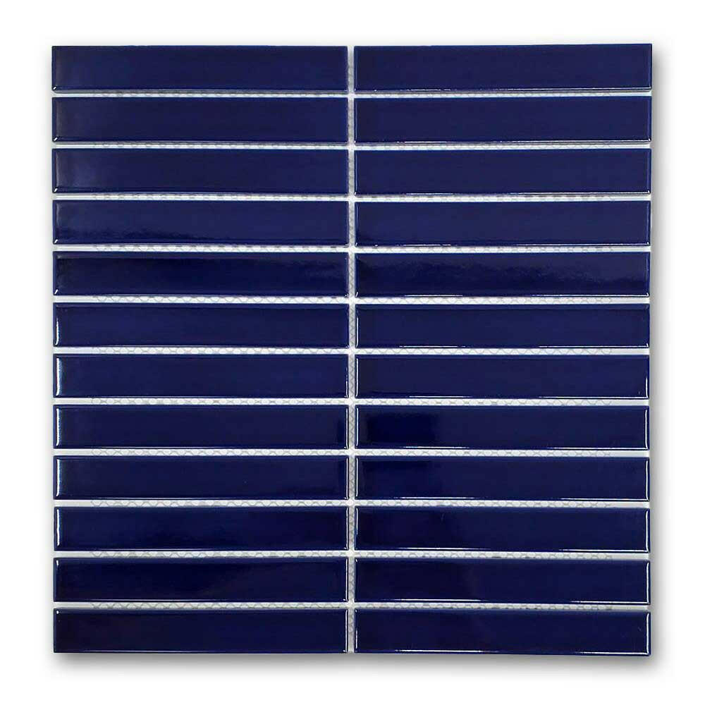 Ā Ā Premium Quality 1" X 6" Gio Cobalt Blue Stacked Linear Porcelain Glossy Mosaic TileĀ
