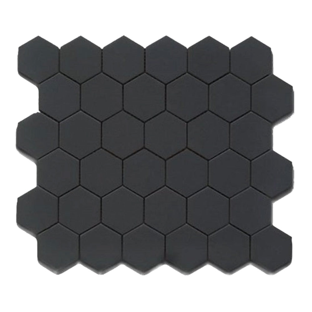 1" Array Black Matte Hexagon Porcelain Mosaic Tile