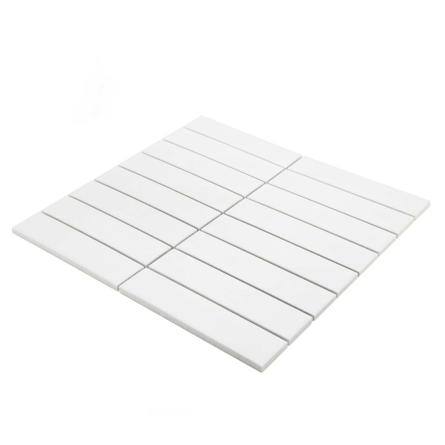 Premium Quality 1.25" x 6" Gio White Stacked Linear Porcelain Matte Mosaic Tile