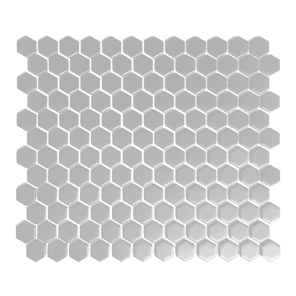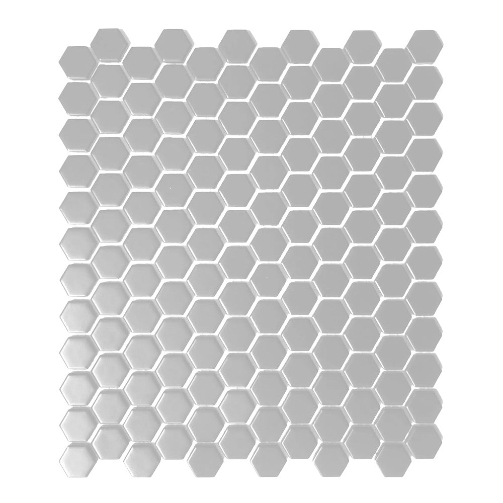 1” hex tiles on 11.5” x 12” mesh-backed mosaic sheets