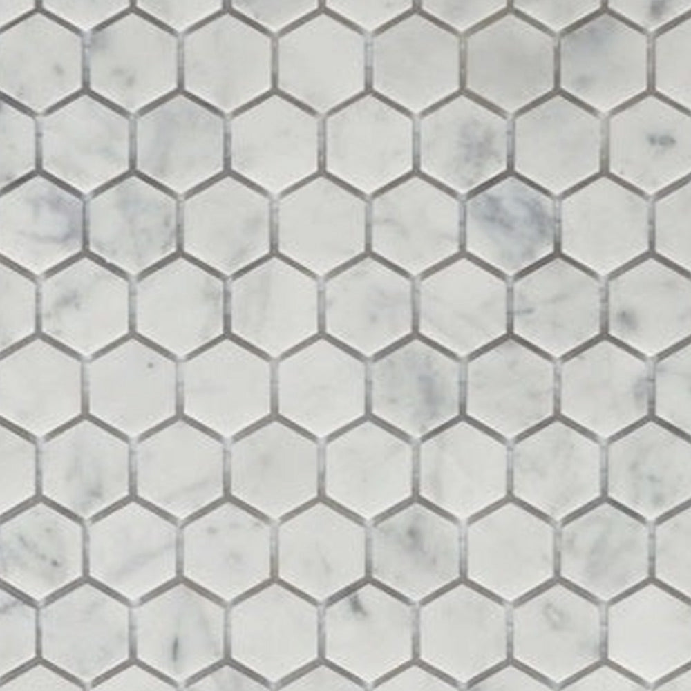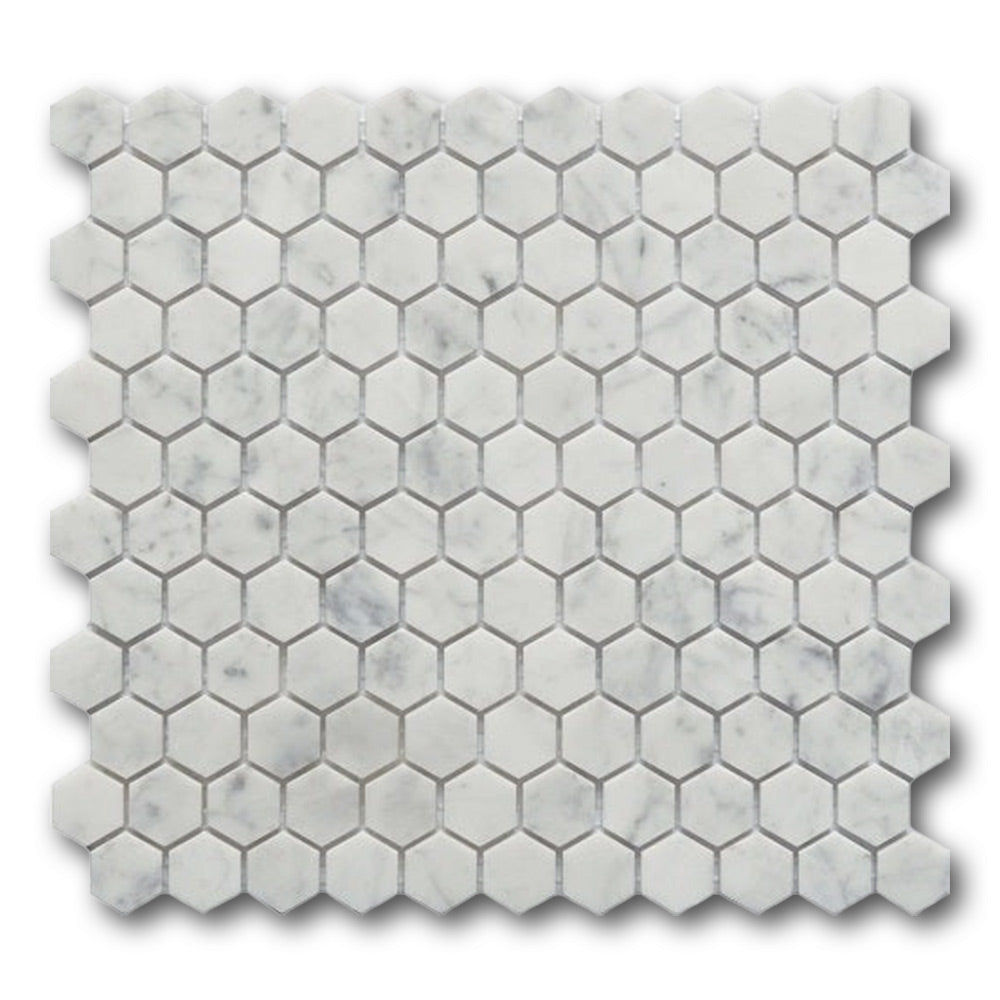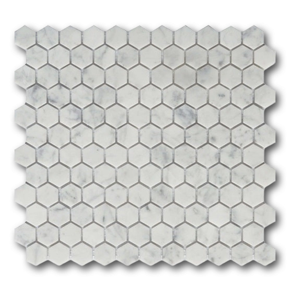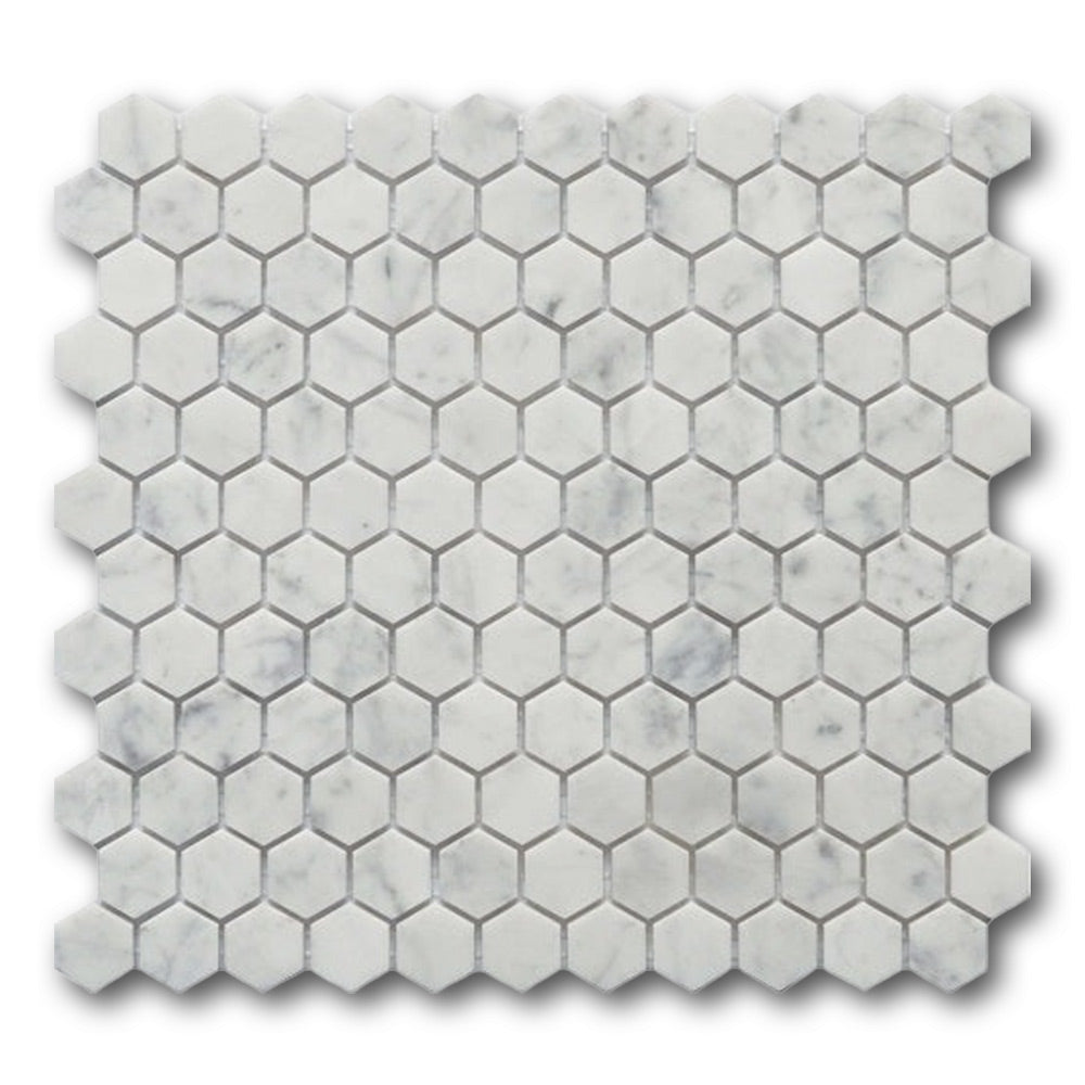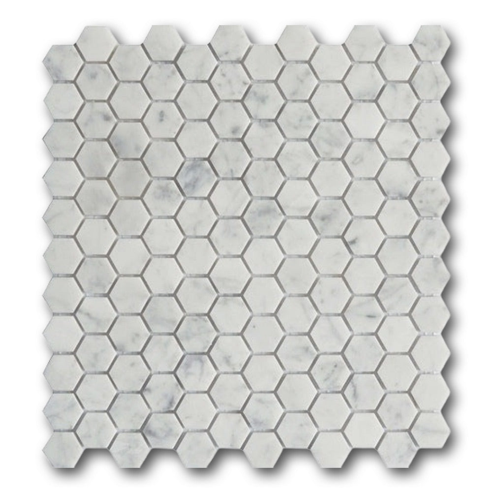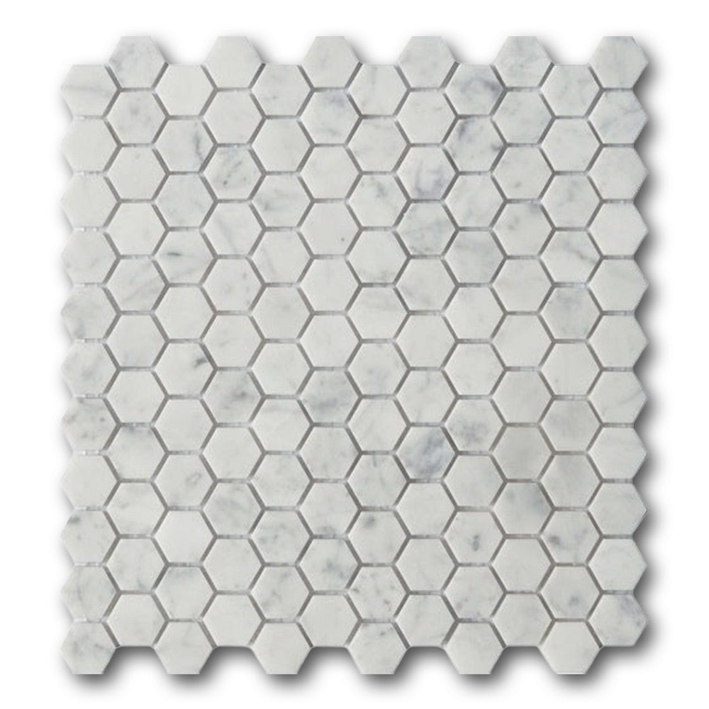 1" Mineralis Carrara Marble Polished Hexagon Stone & Glass Mosaic Tile