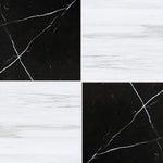 12x12 Checkerboard Tile - Black Marquina & Bianco Dolomite Polished Marble