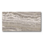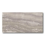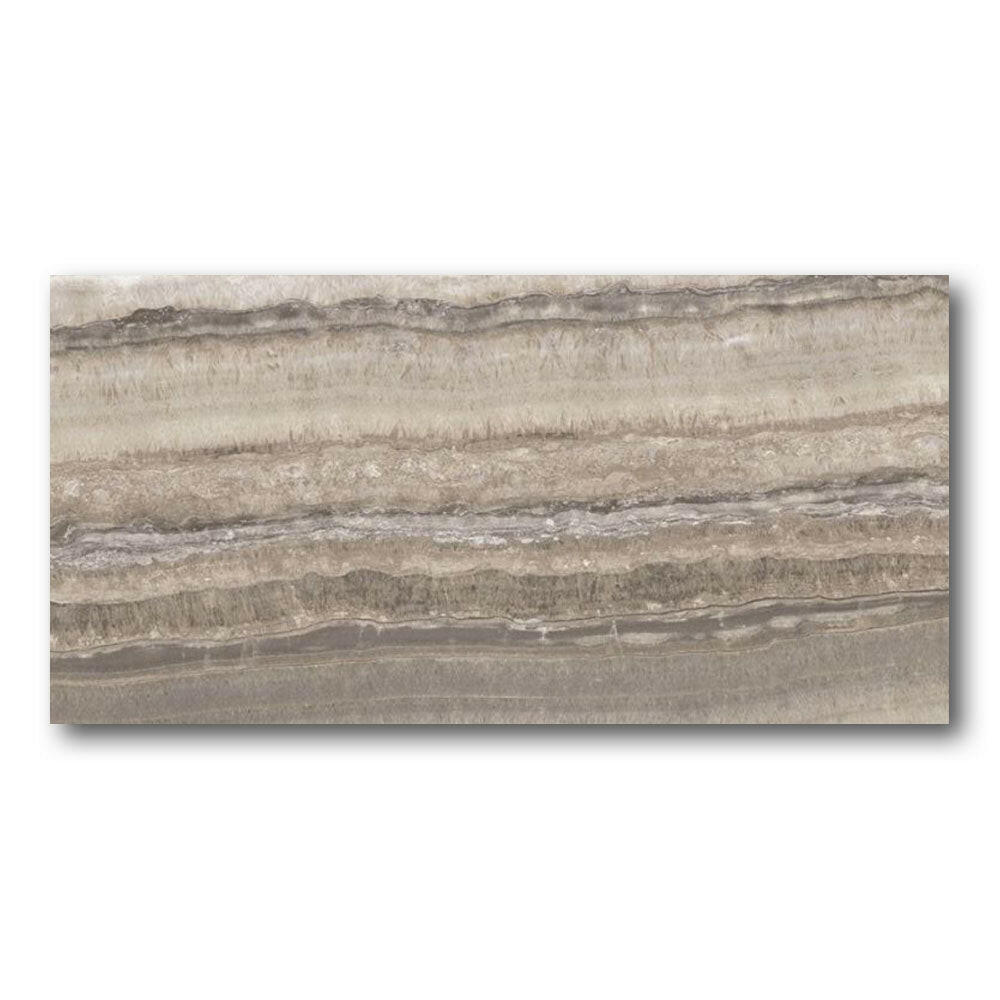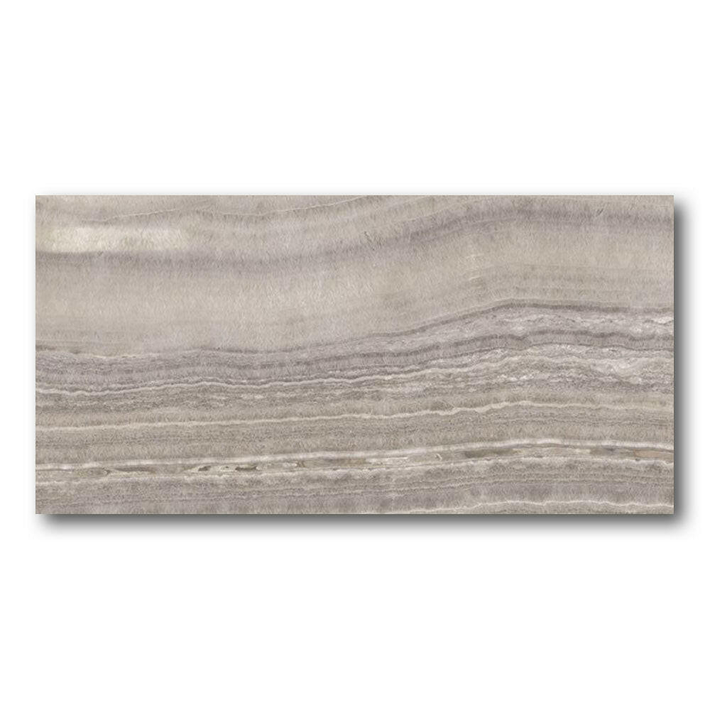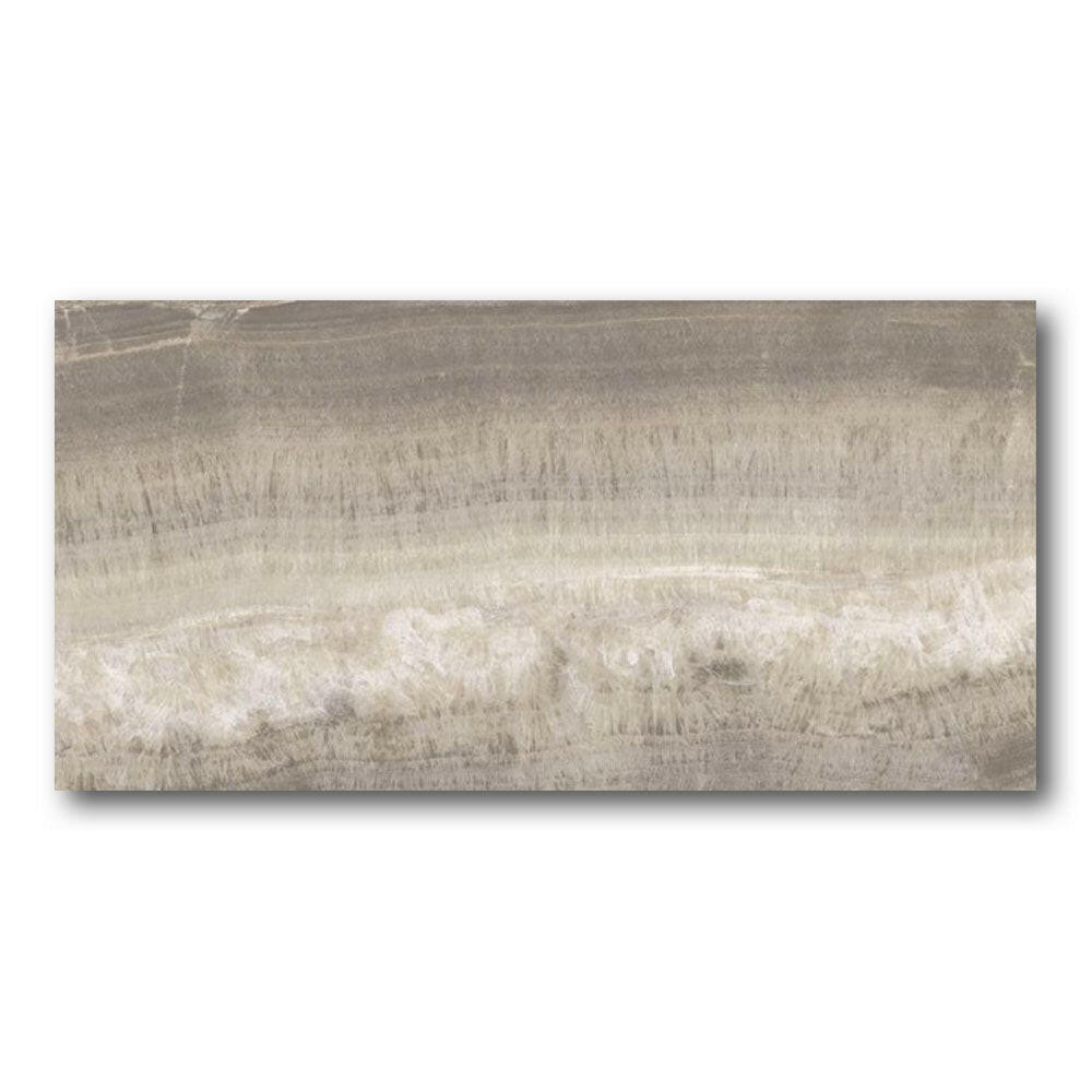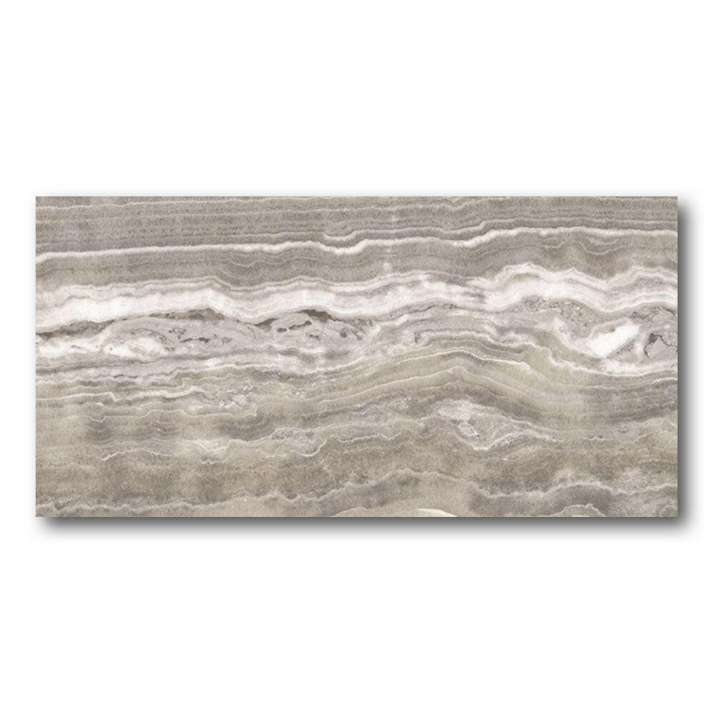 This 12x24 tile mimics the delicate layers of real onyx, with flowing patterns in soft grey, cream, and white. Its matte surface gently diffuses light while adding slip resistance, making it both safe and visually soothing. As a result, your space feels clean, open, and refined.