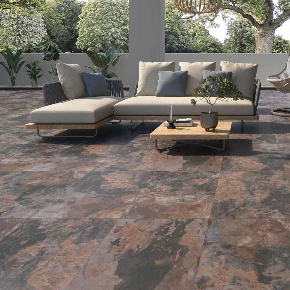 Slate look porcelain supports rich design