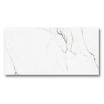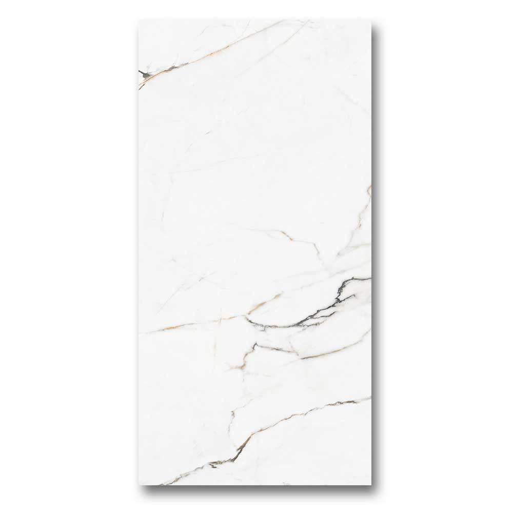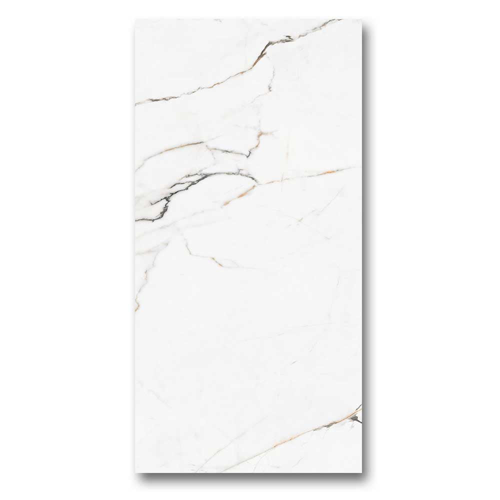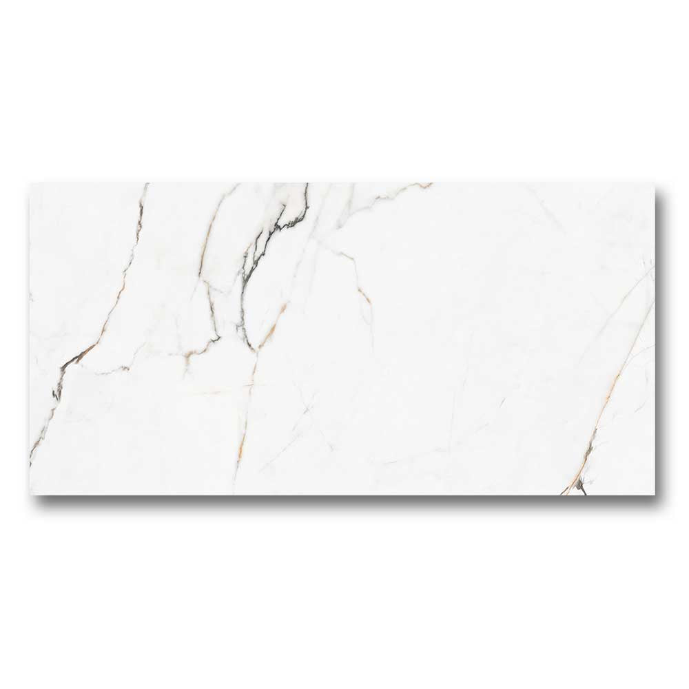 This marble look porcelain tile is a stunning choice for luxurious spaces. For example, use it in a bathroom for a spa-like feel, or in a kitchen to create a high-end foundation. Its golden veining pairs beautifully with warm tones, matte black, or brushed brass accents.