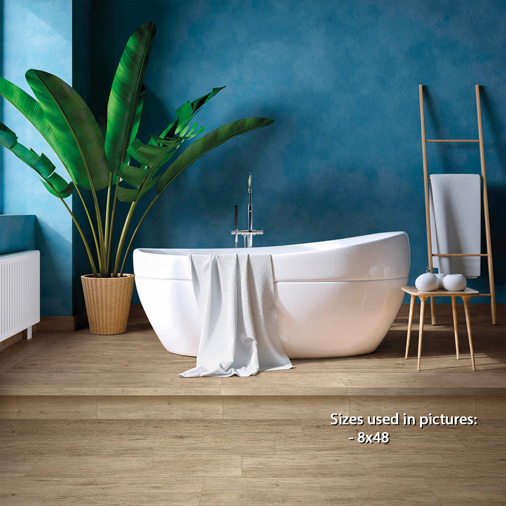 This tile works well in virtually any setting—bathrooms, kitchens, living rooms, and even covered patios. Thanks to its moisture resistance and slip protection, it’s especially suited for wet areas. Furthermore, it can be installed in traditional or creative layouts, such as herringbone or staggered plank.