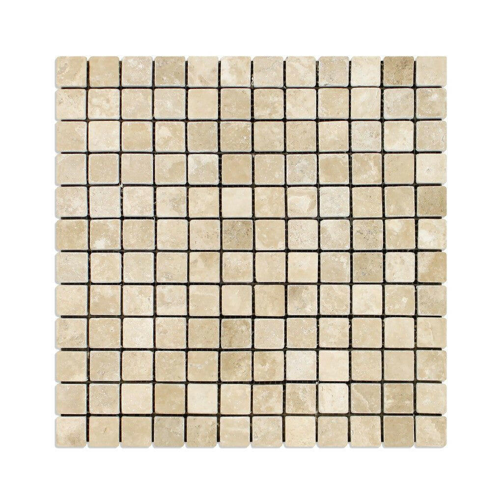 1x1 Durango Cream Travertine Tumbled Mosaic Tile