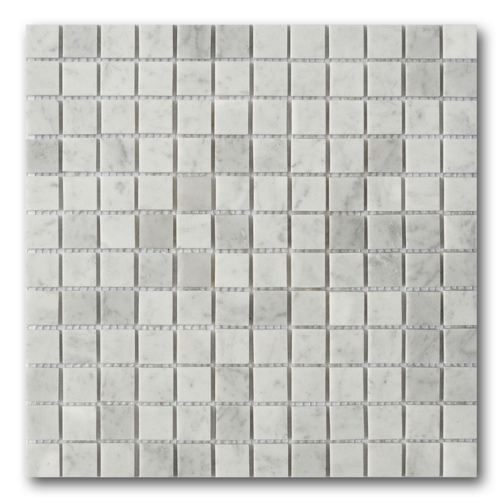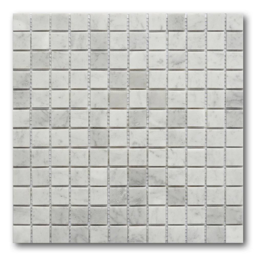 To sum up, the 1x1 Mineralis Carrara Marble Polished Stone & Glass Mosaic Tile blends the luxury of natural stone with the clarity of glass. It’s a refined yet practical choice for any room needing a touch of elegance. Add it to your design and enjoy timeless appeal with every tile.