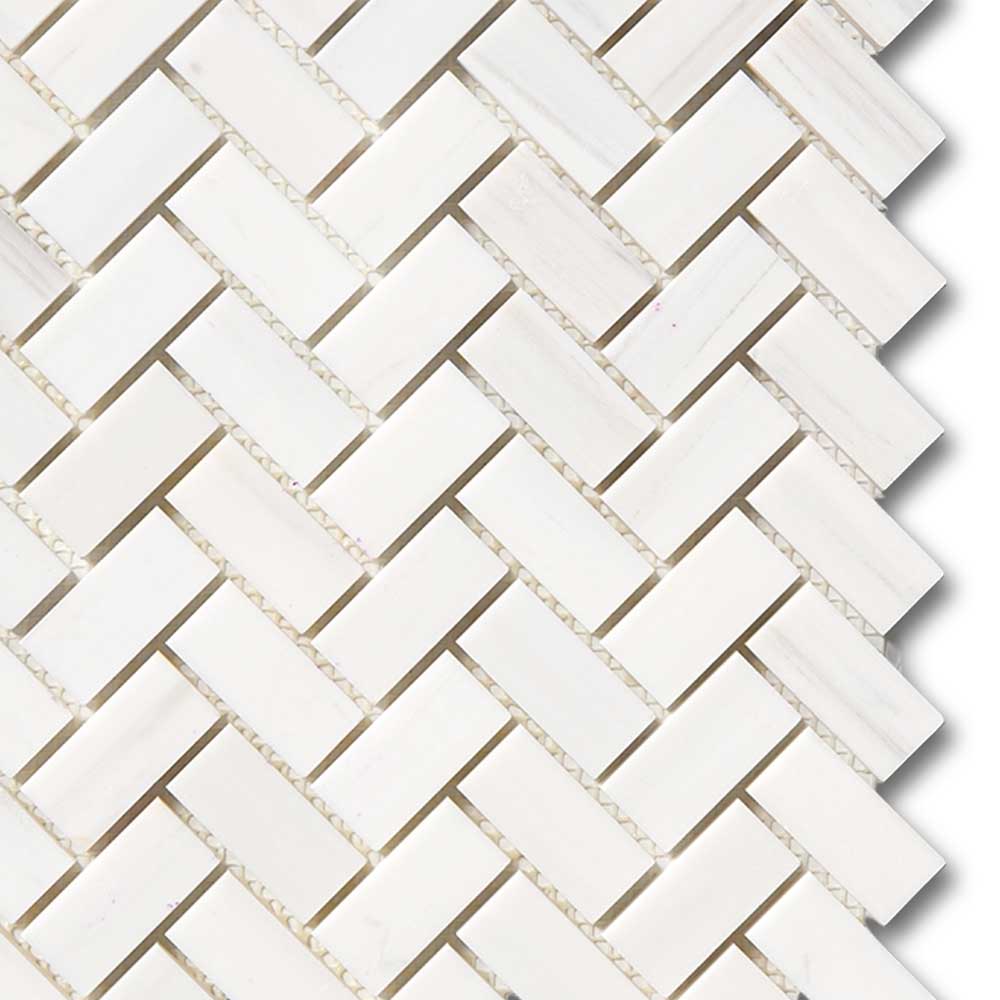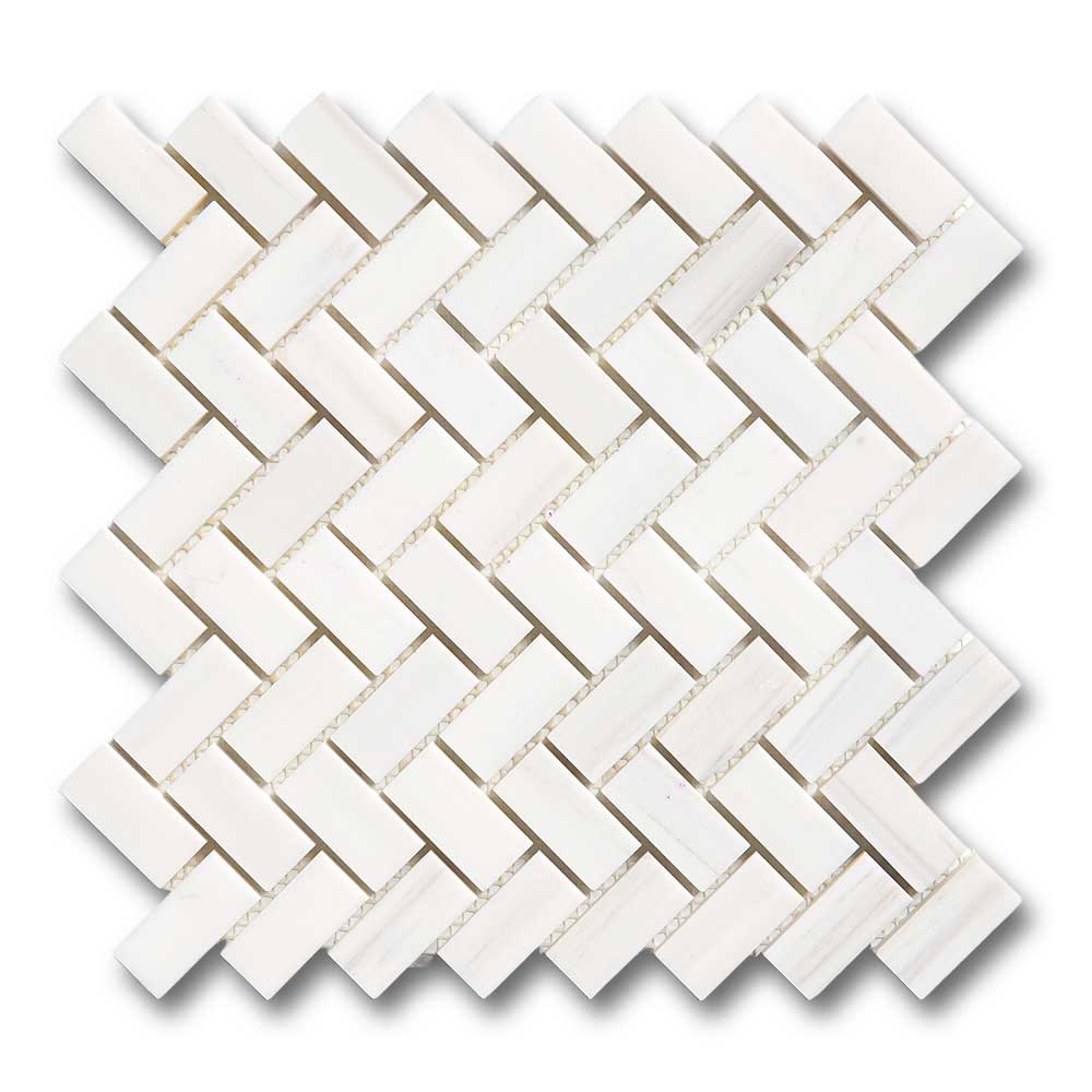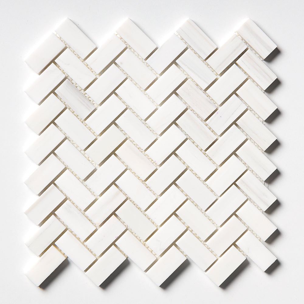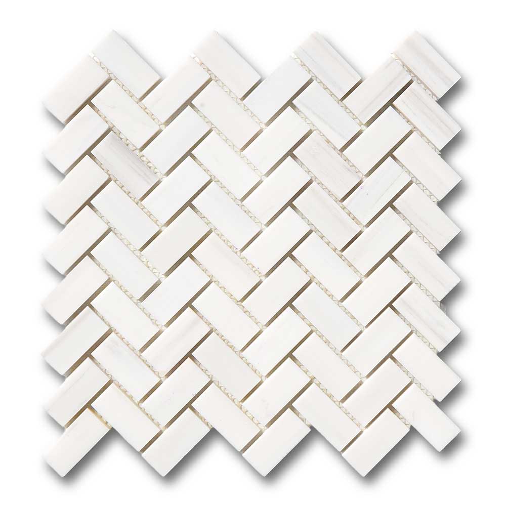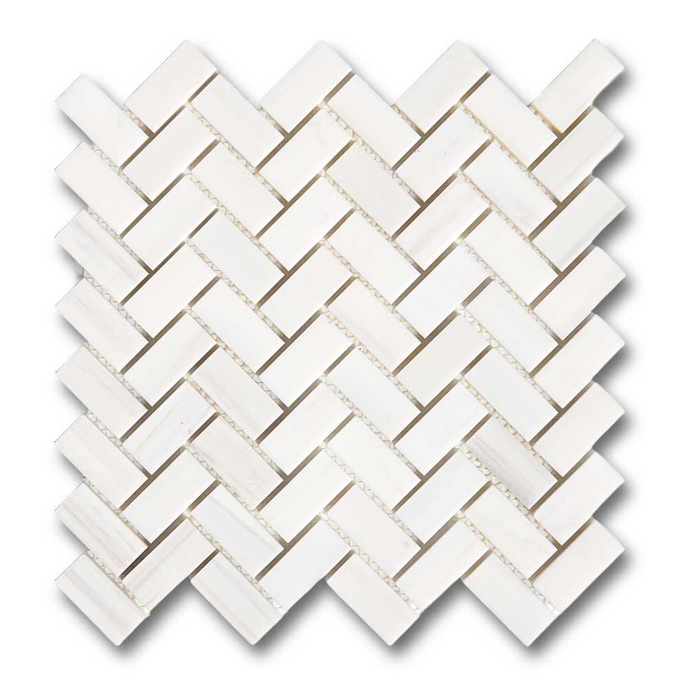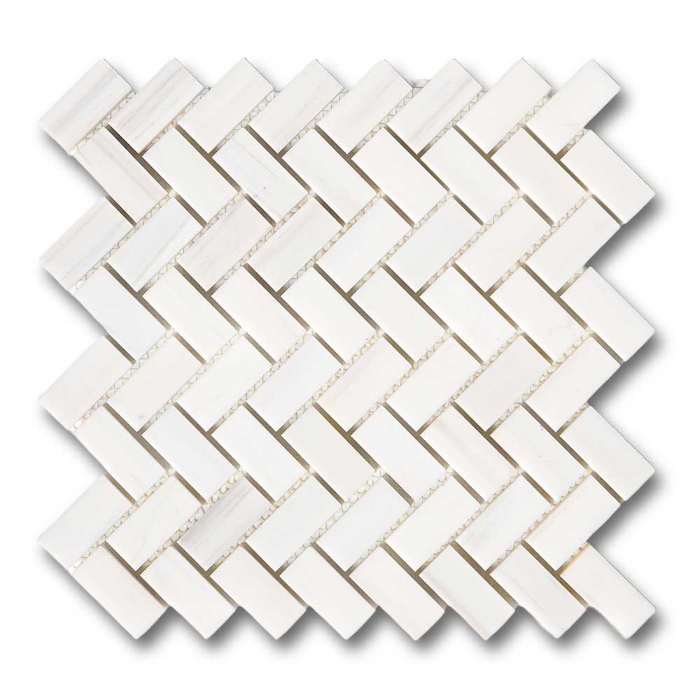 Premium Quality 1" X 2" BIANCO DOLOMITE POLISHED HERRINGBONE MOSAIC TILE