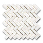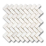 1x2 Bianco Dolomite Polished Herringbone Mosaic Tile