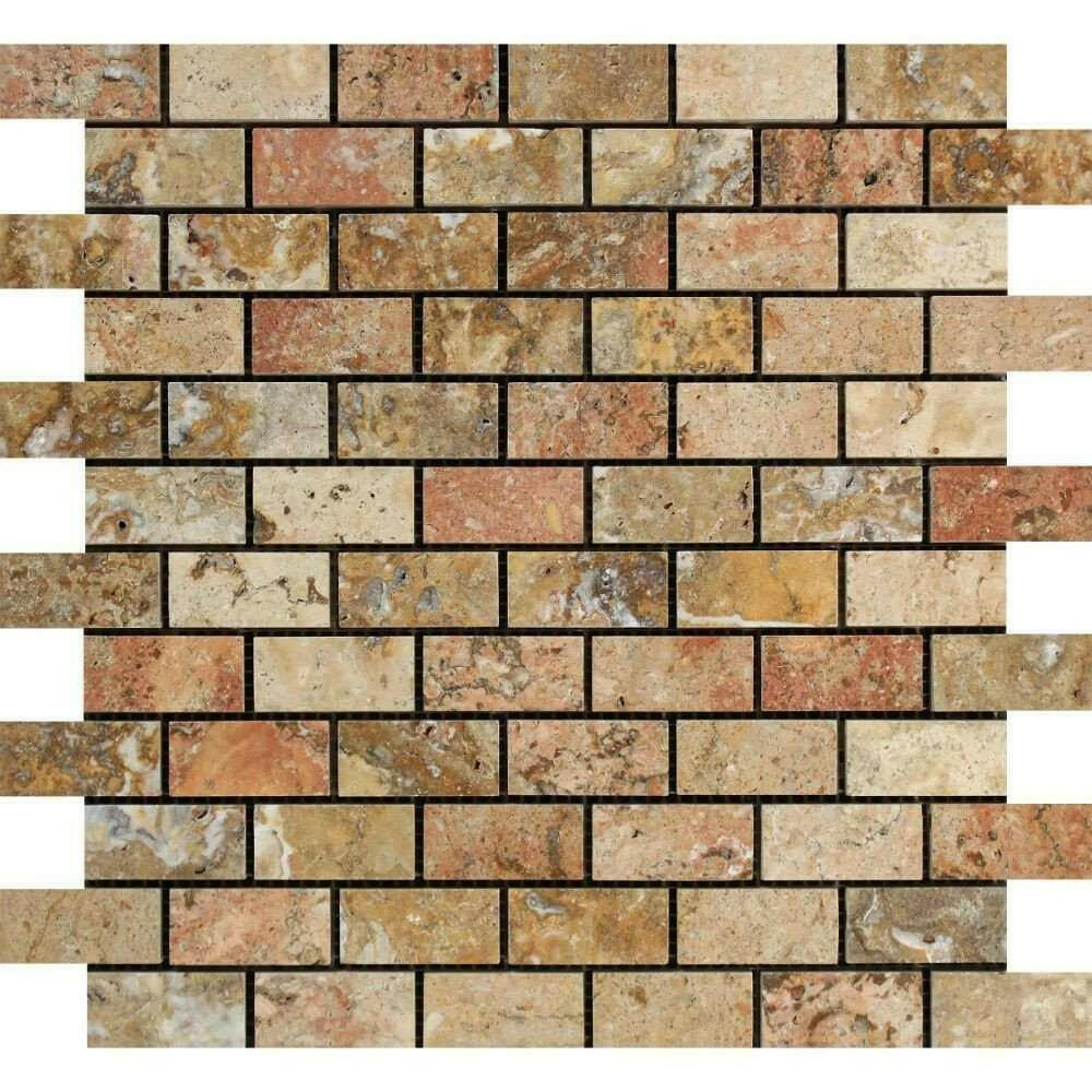 Premium Quality 1" X 2" SCABOS TRAVERTINE POLISHED BRICK MOSAIC TILE
