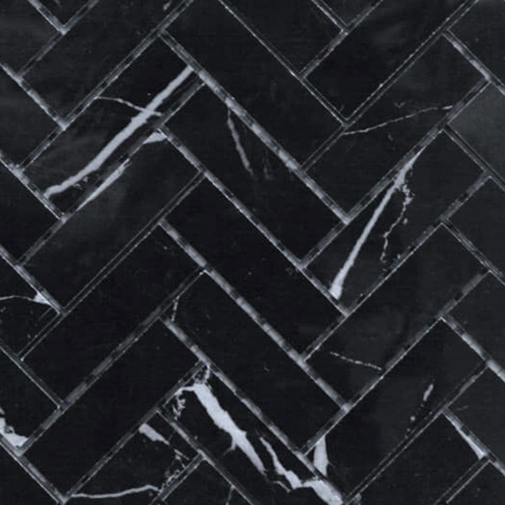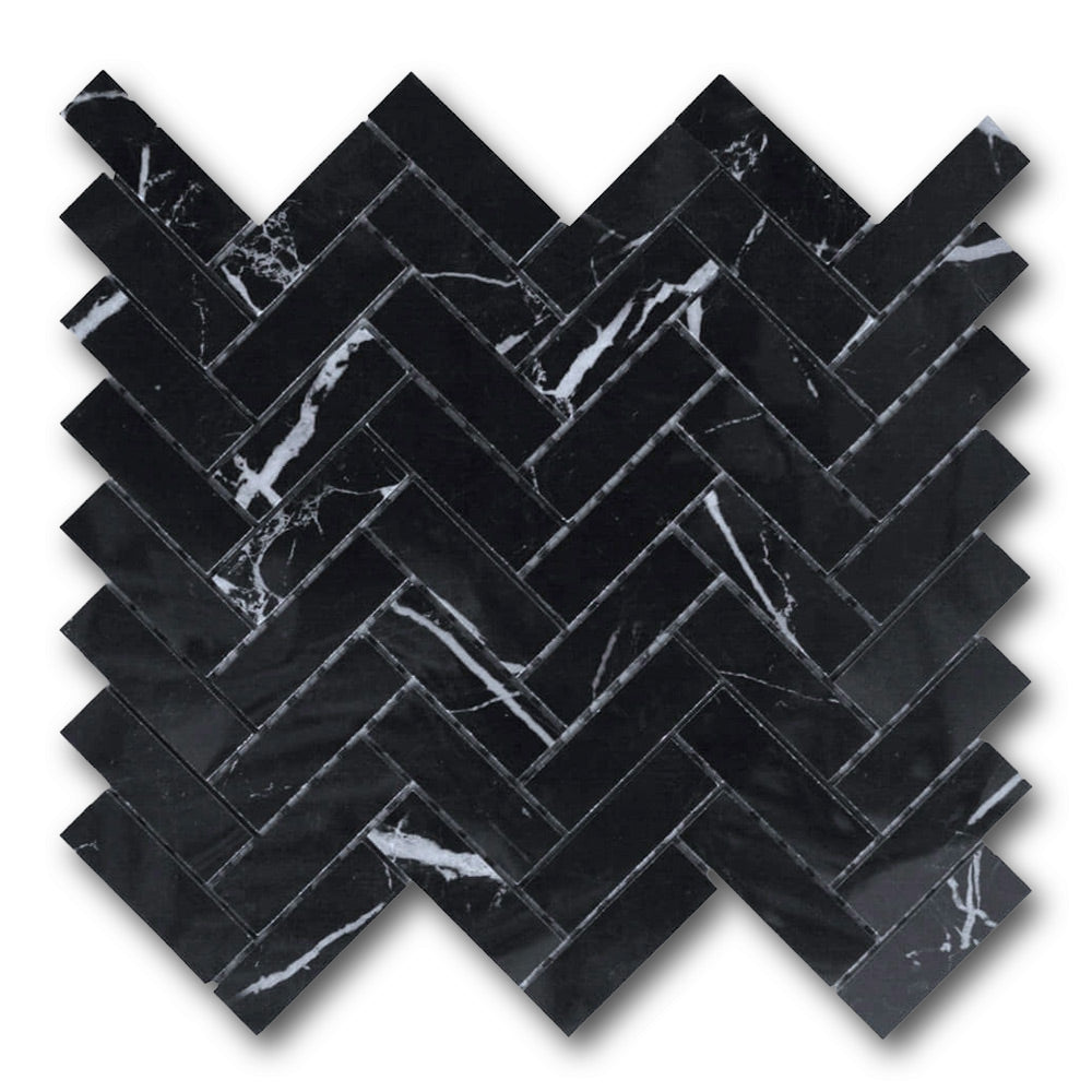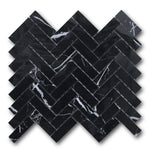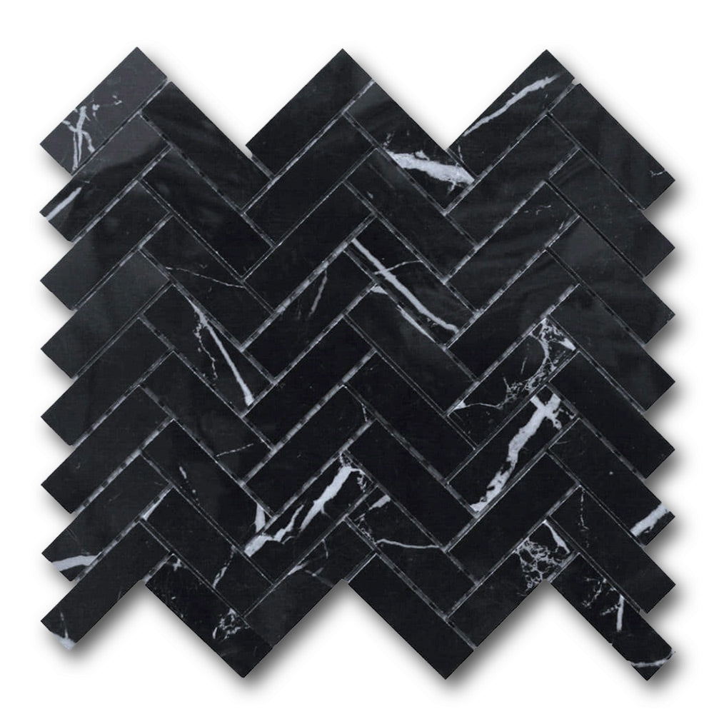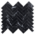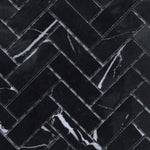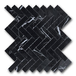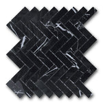 Premium Quality 1" X 3" BLACK MARQUINA MARBLE POLISHED HERRINGBONE MOSAIC TILE