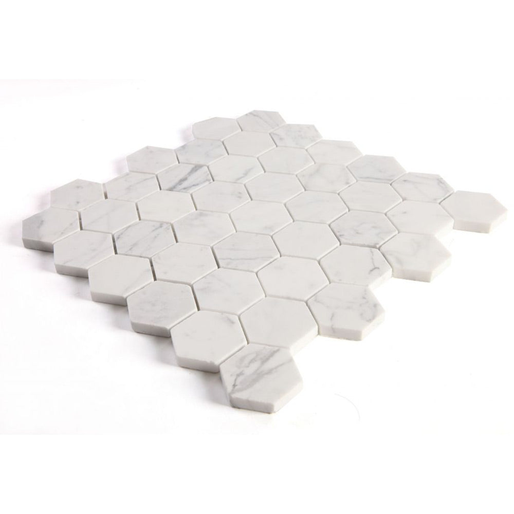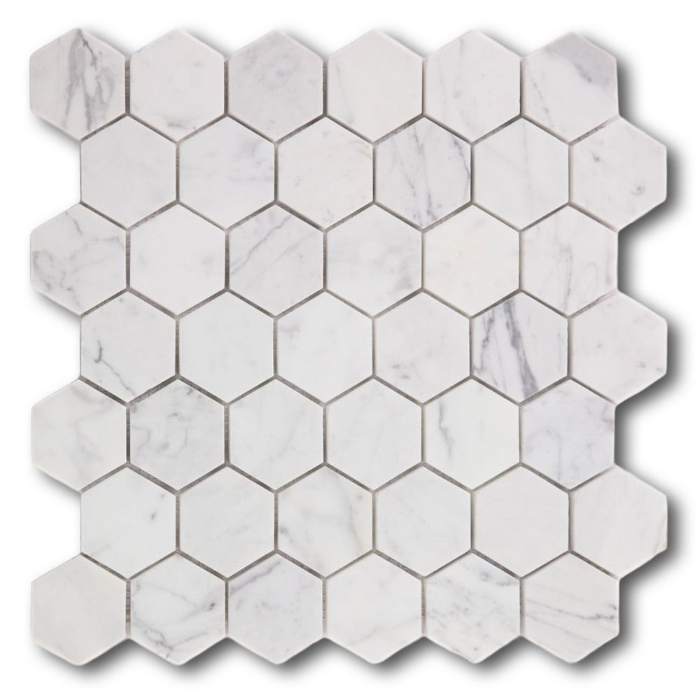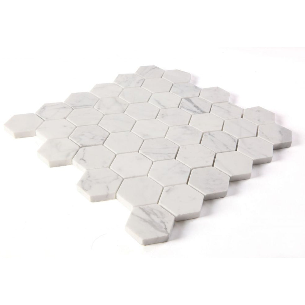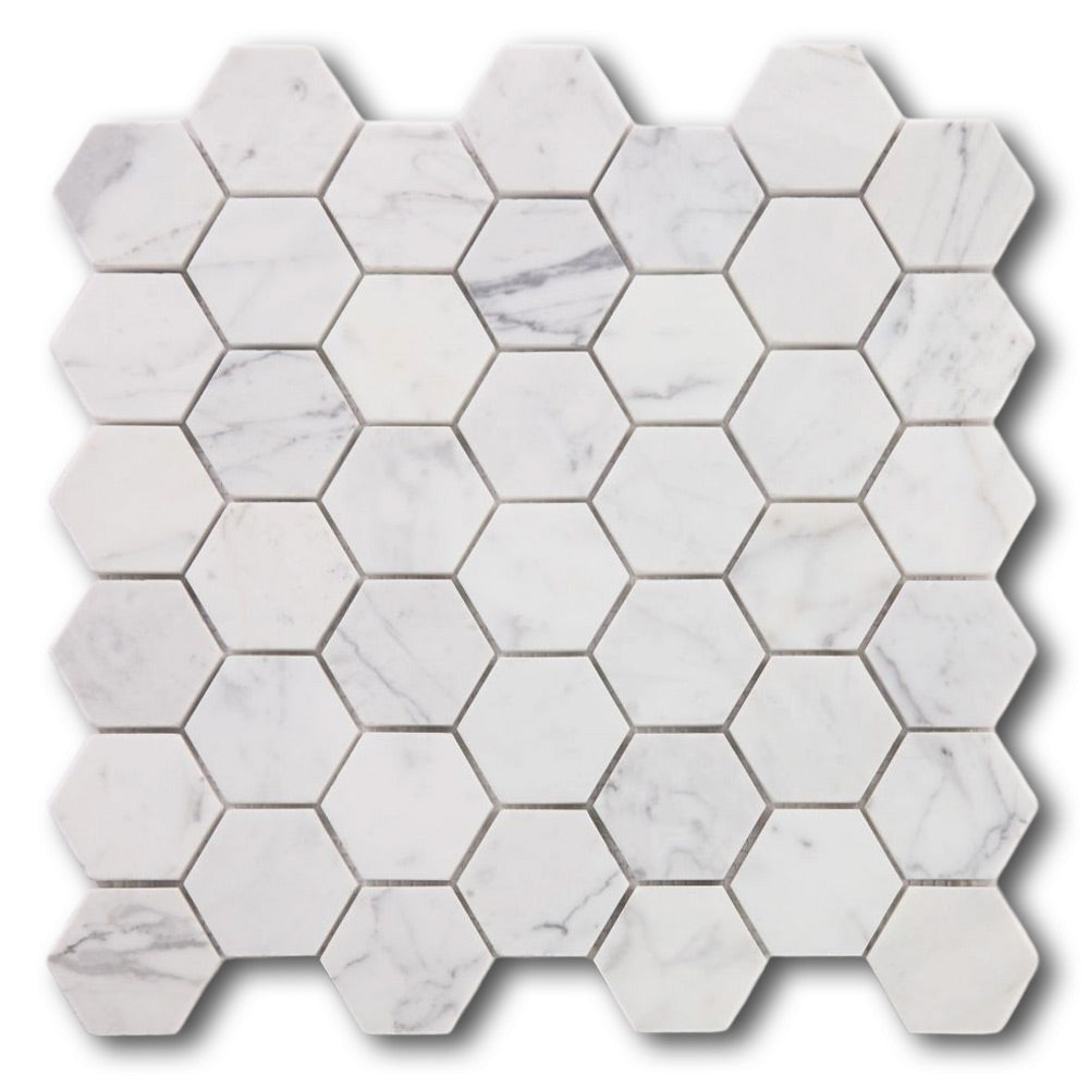 2" Beehive Calacatta White Polished Hexagon Marble Mosaic Tile