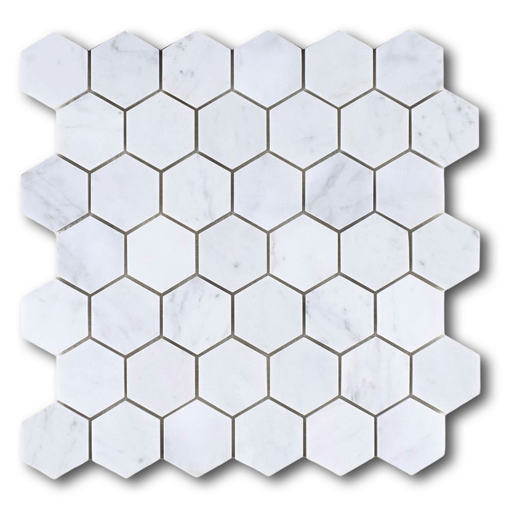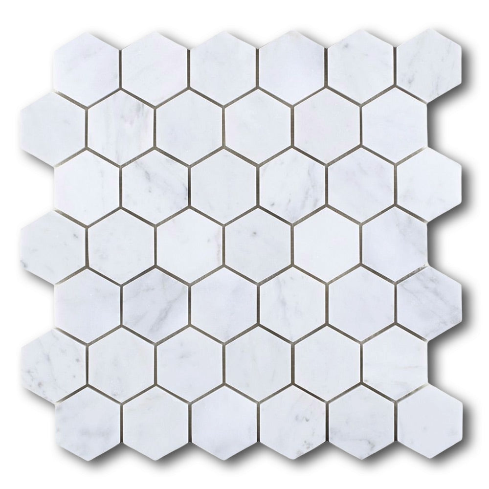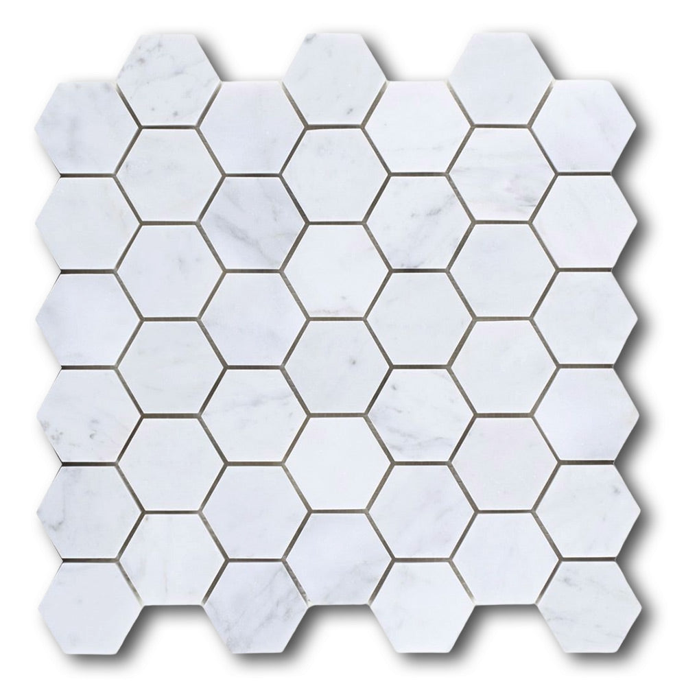 2" Beehive Carrara Polished Hexagon Marble Mosaic Tile
