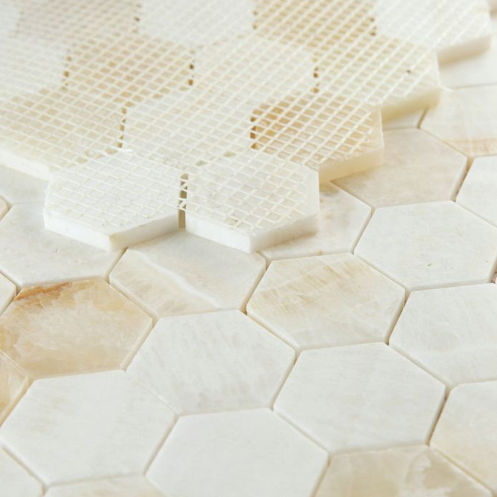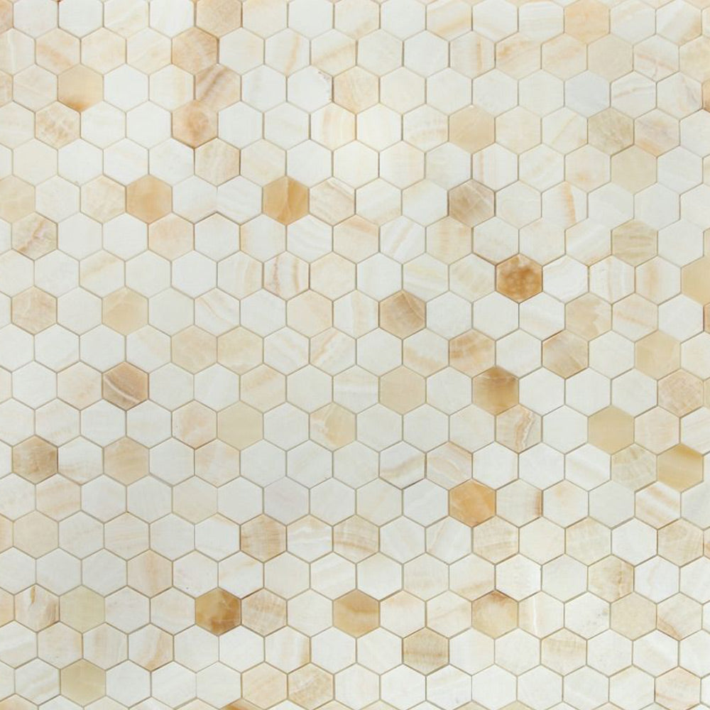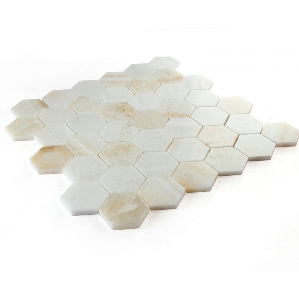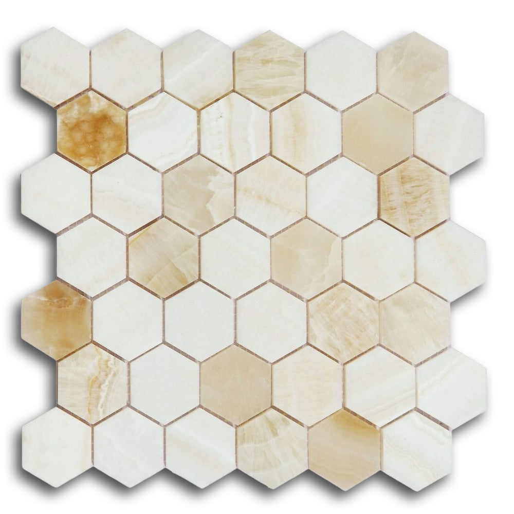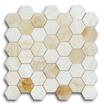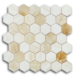 2" Beehive Onyx Ivory Honed Hexagon Marble Mosaic Tile