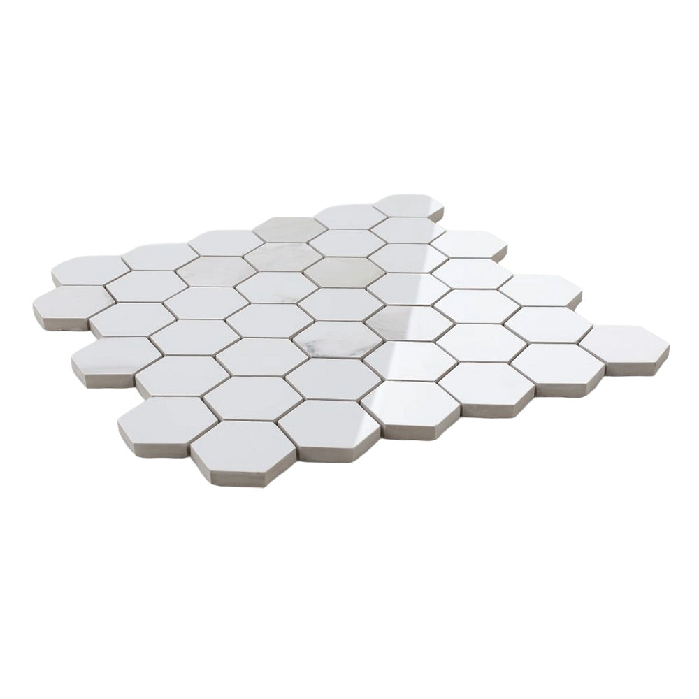 2" Borneo Calacatta Dorado Polished Hexagon Marble Laminated Porcelain Mosaic Tile