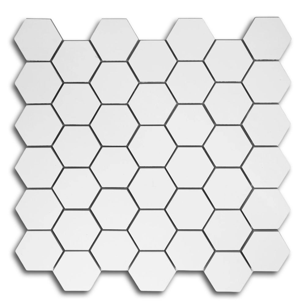 2" Borneo Roy White Polished Hexagon Marble Laminated Porcelain Mosaic Tile