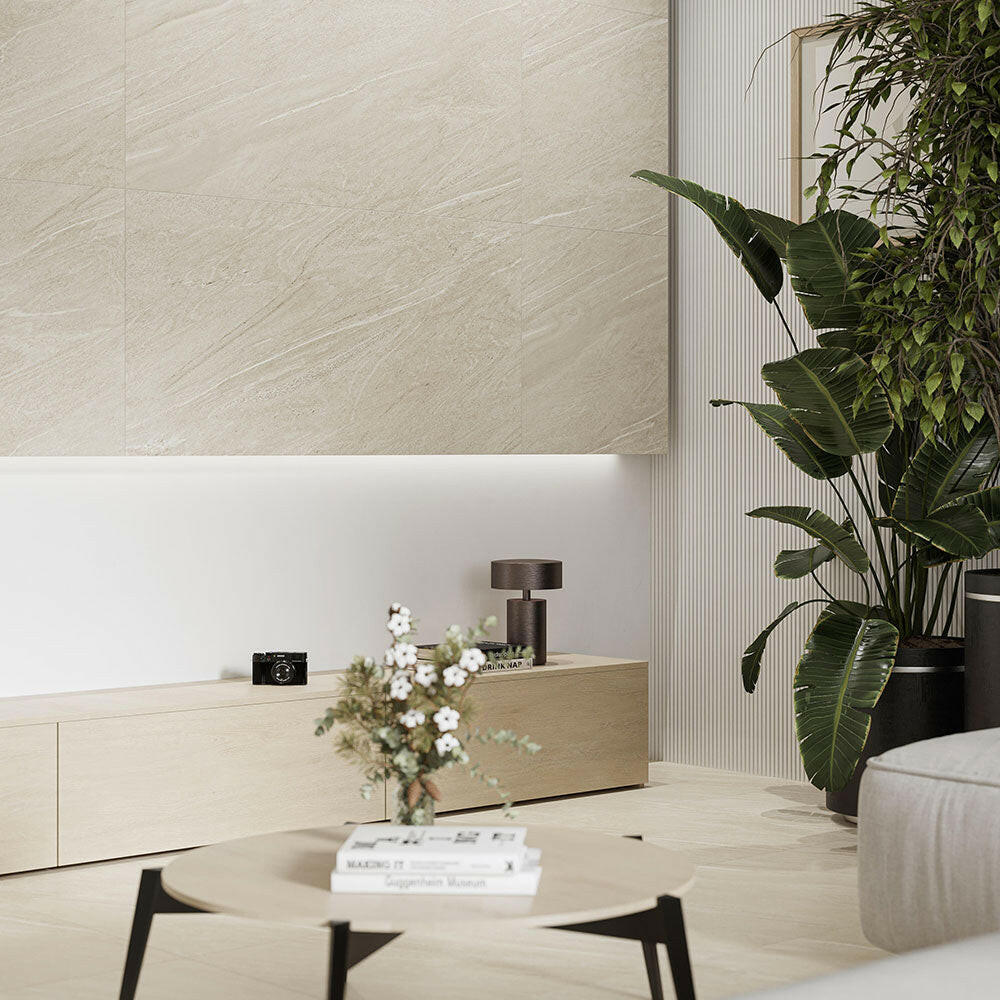 Use the Connor Beige porcelain tile in kitchens, bathrooms, or entryways to add natural style and durability. For example, its warm tones complement wood accents and neutral palettes. Additionally, its matte finish prevents slips and reduces glare. Because of its realistic slate look, it fits beautifully in both residential and commercial environments.