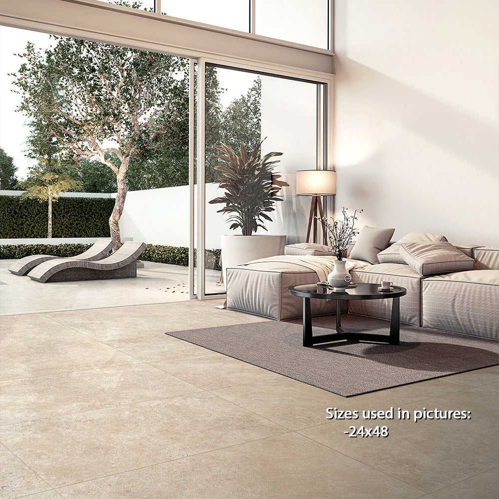 Generous 24x48 format reduces grout lines for a seamless look
