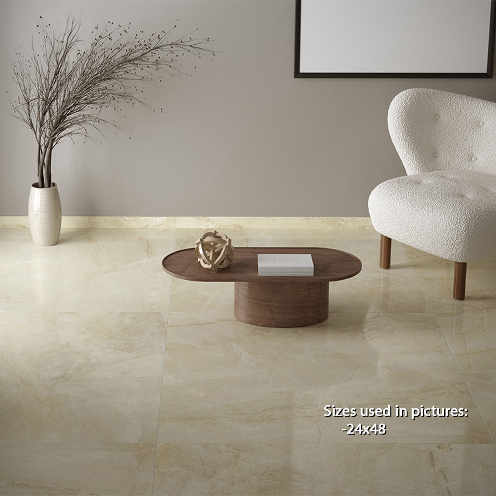 24x48 Marmi Lux Soveraia Beige Polished Marble Look Porcelain Tile