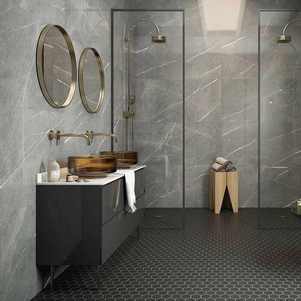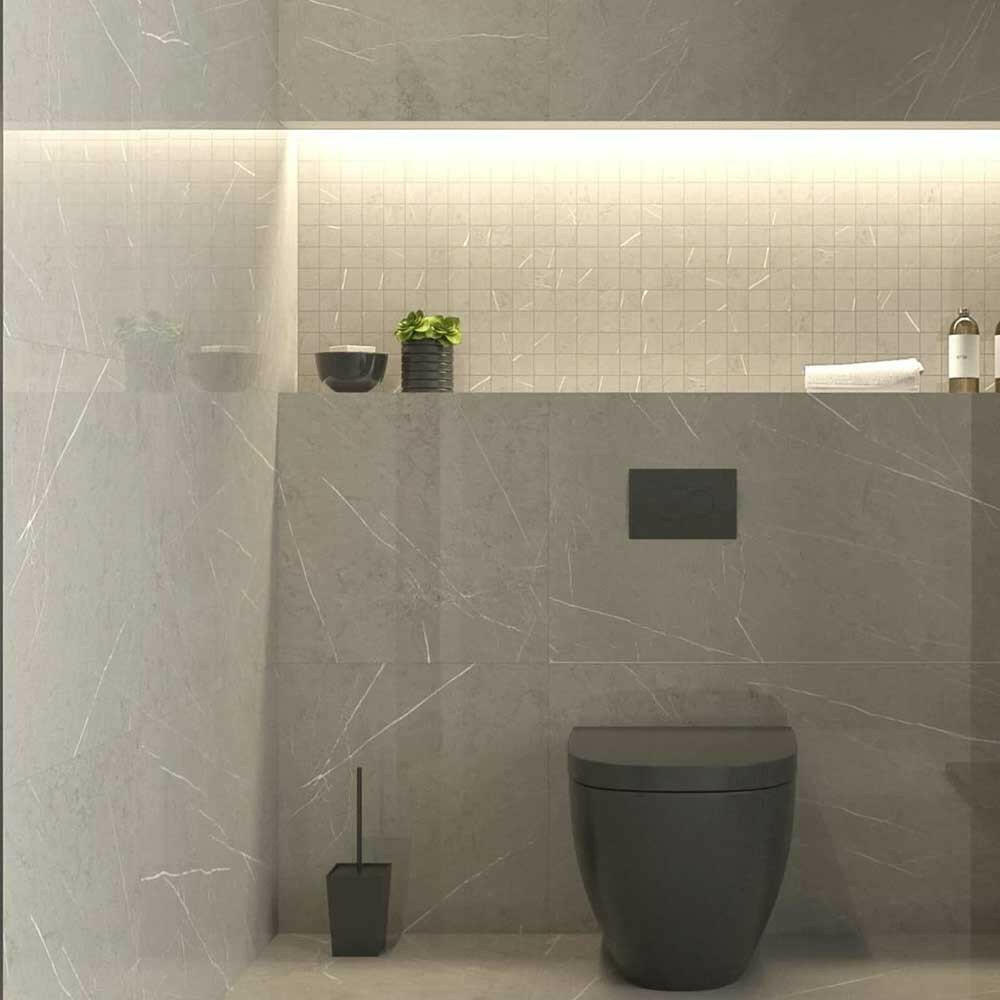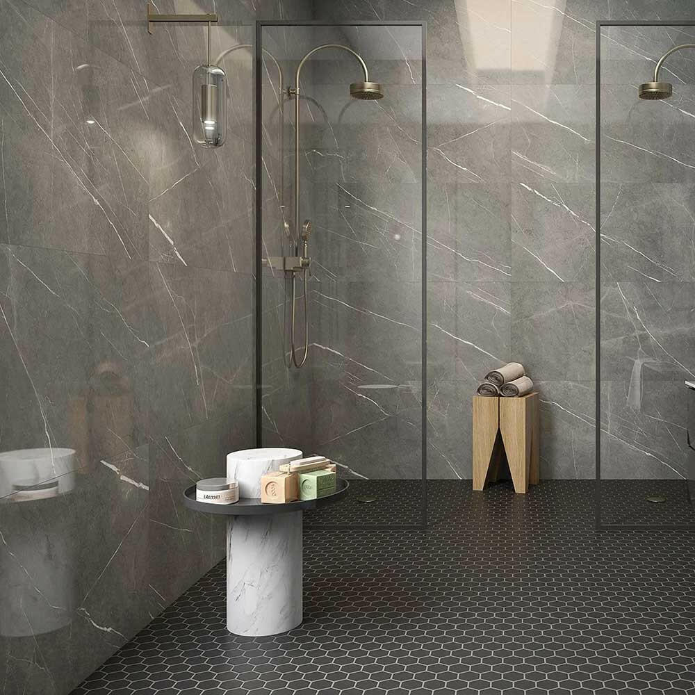 Transform your space with the luxury and practicality of the Pietra Smoke Limestone Look Glossy Porcelain Tile. Discover the ease of maintenance and timeless appeal that make this tile an exceptional investment.