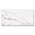 Transform your interiors with the sophisticated charm of the 24x48 Statuario Blanco Marble Look Glossy Porcelain Tile. Designed to replicate the opulence of natural marble, this tile offers a polished surface that reflects light beautifully, adding depth and luxury to any room.