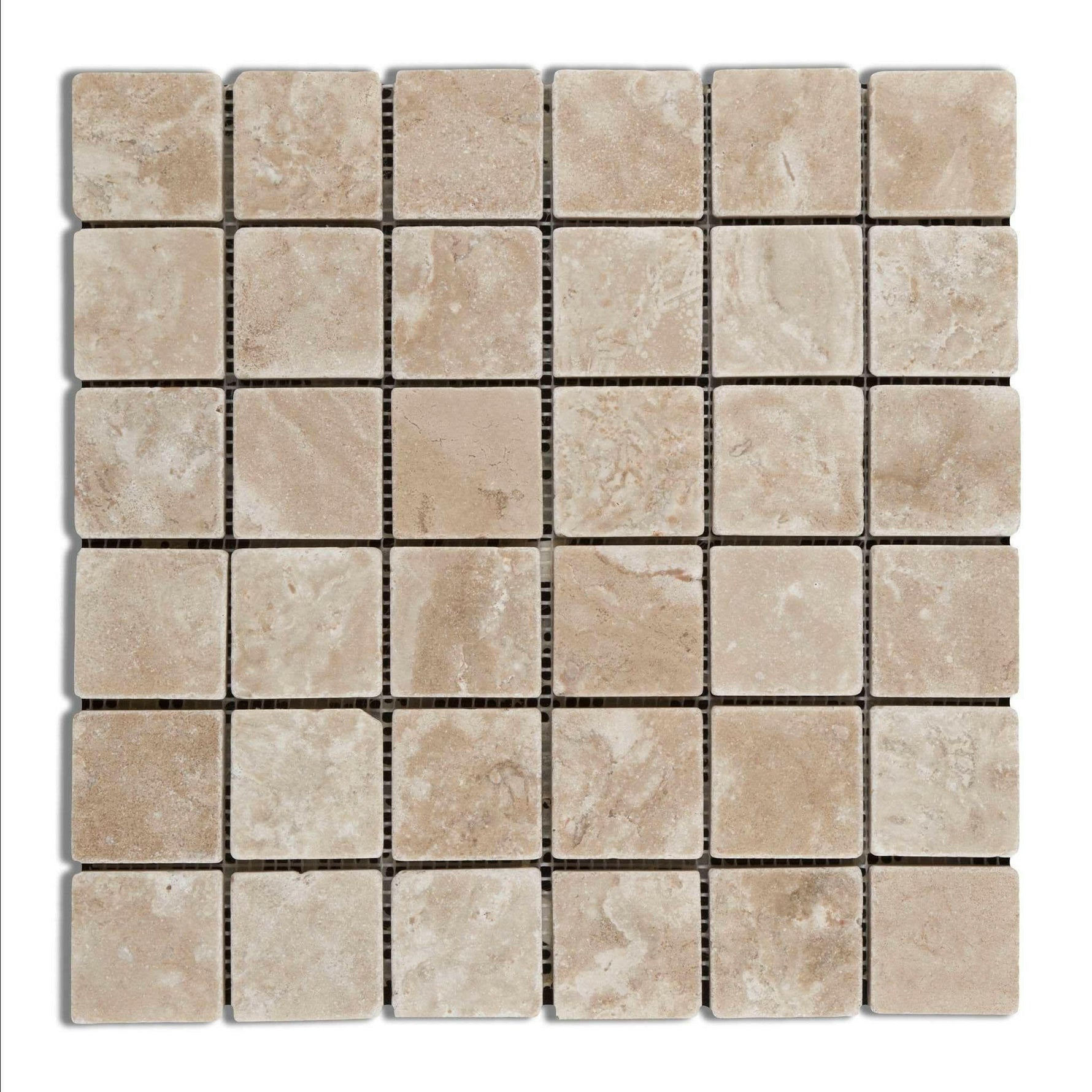 2x2 Durango Cream Travertine Tumbled Mosaic Tile