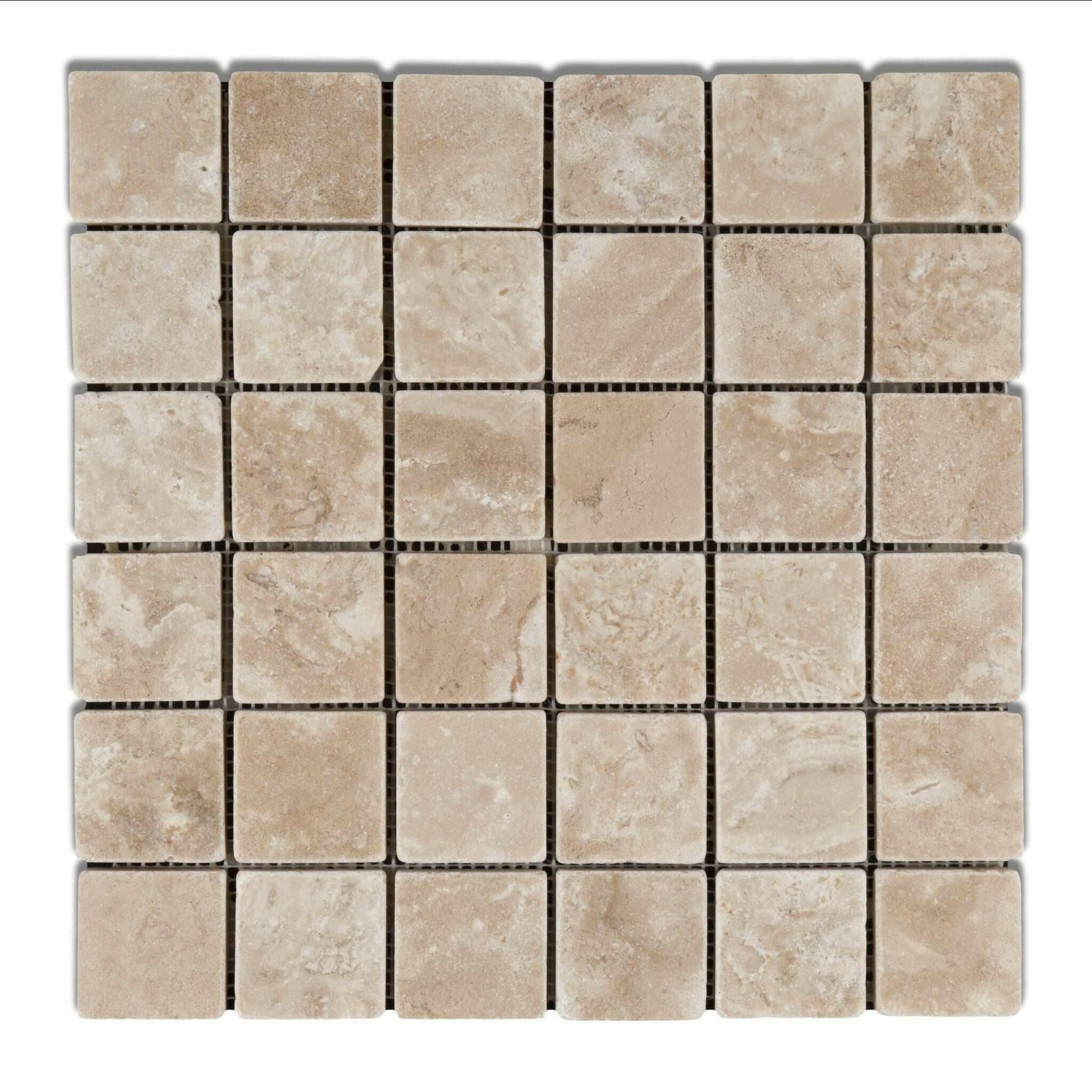Premium Quality 2" X 2" DURANGO CREAM TRAVERTINE TUMBLED MOSAIC TILE