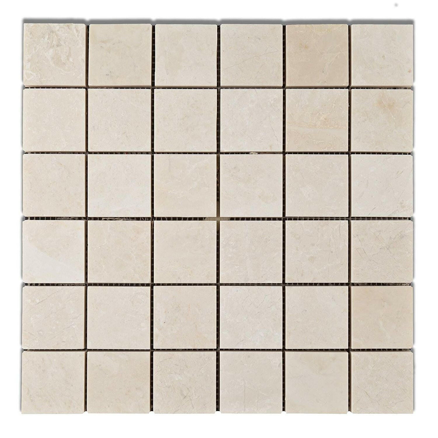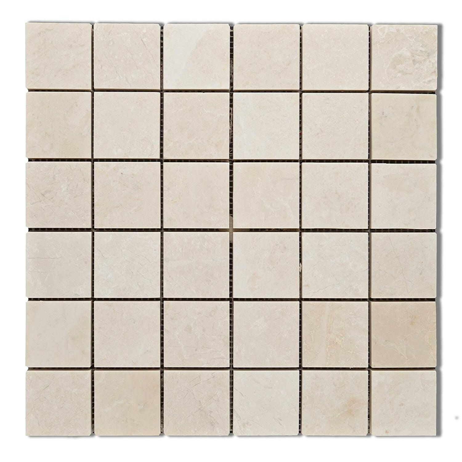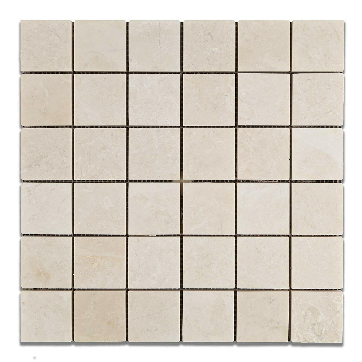 Premium Quality 2" X 2" White Pearl / Botticino Marble POLISHED MOSAIC TILE