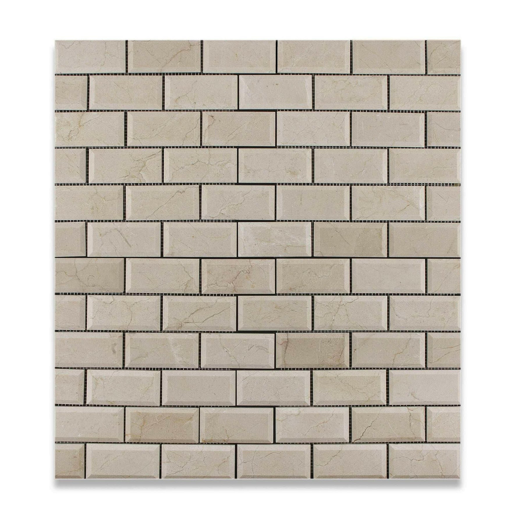 2x4 Crema Marfil Marble Polished & Beveled Brick Mosaic Tile