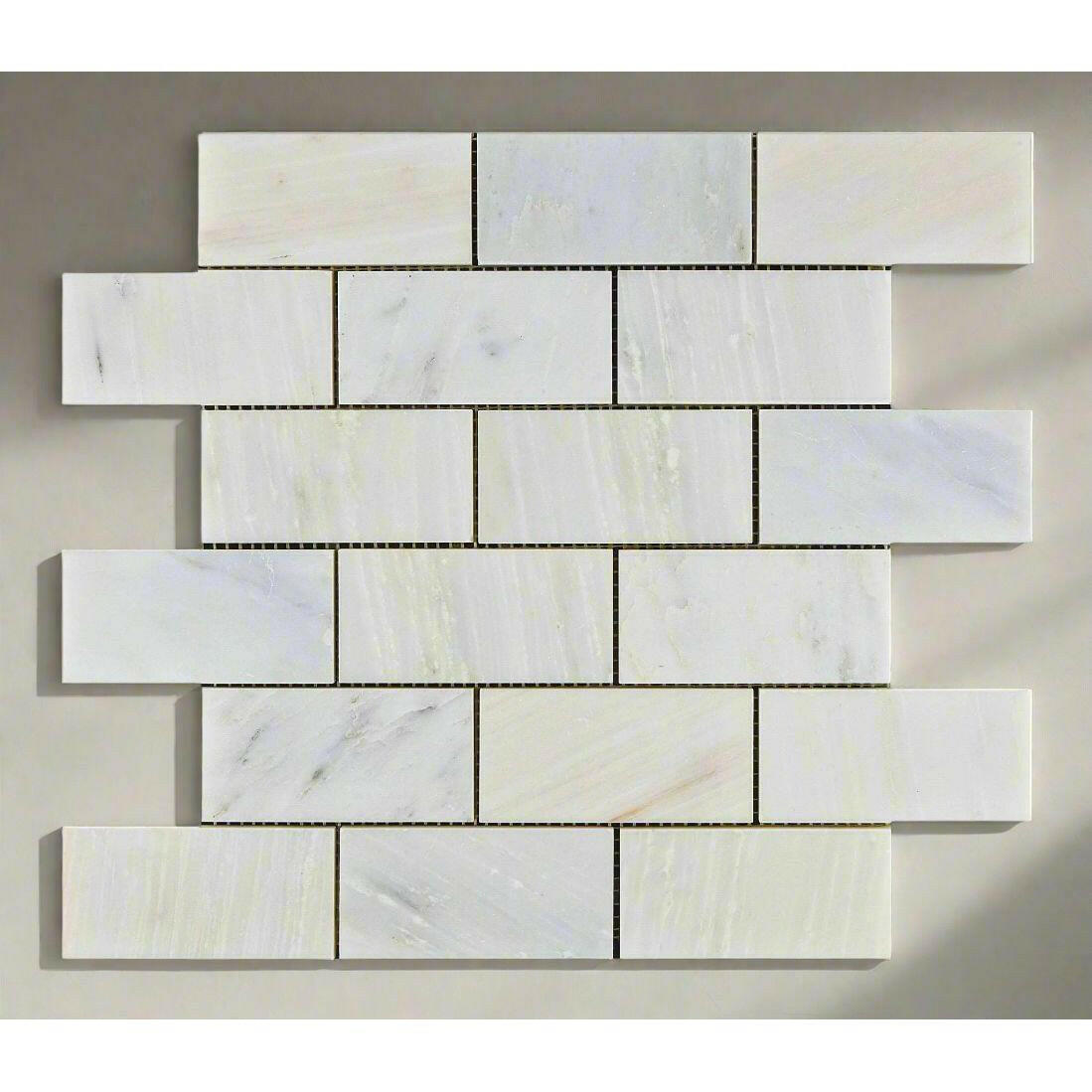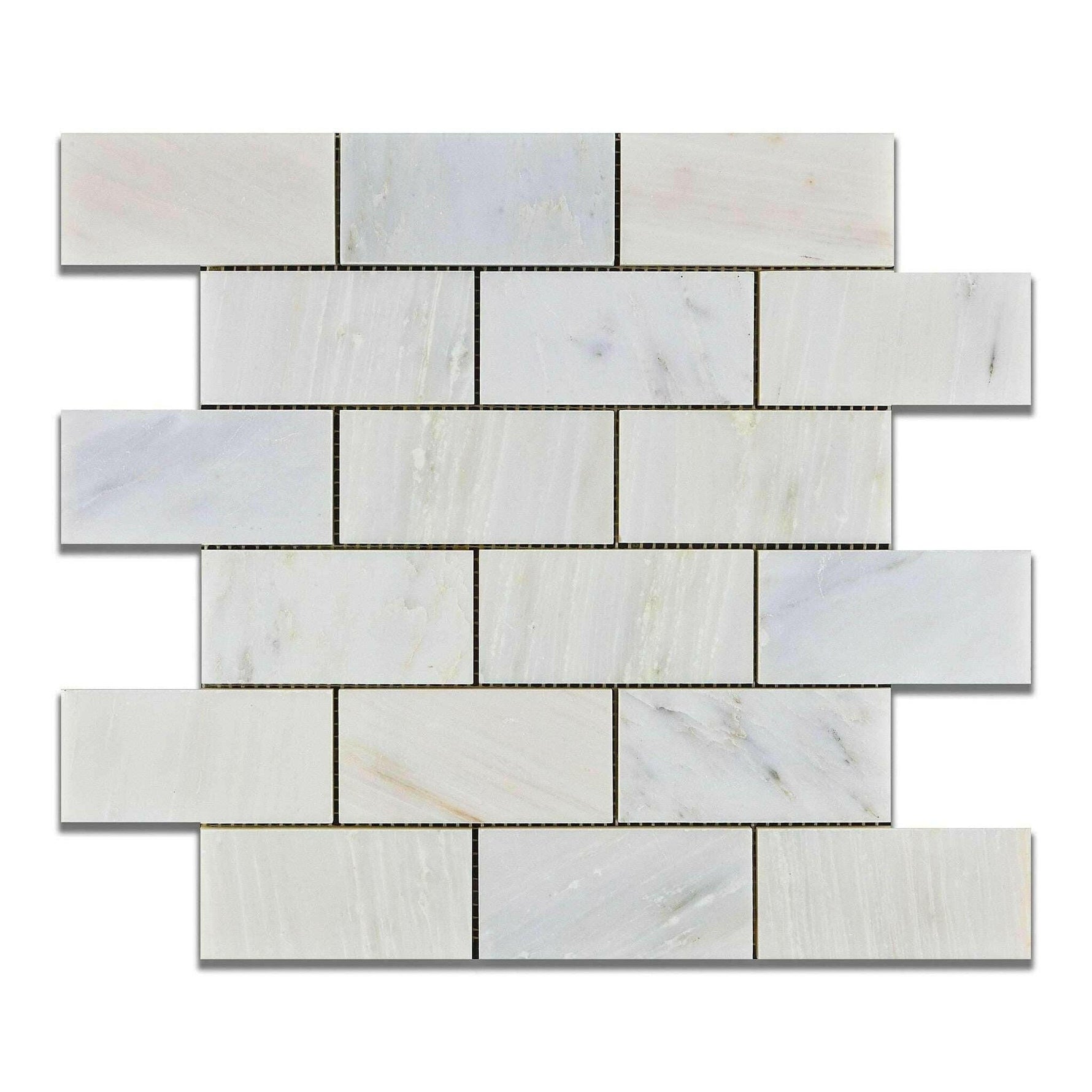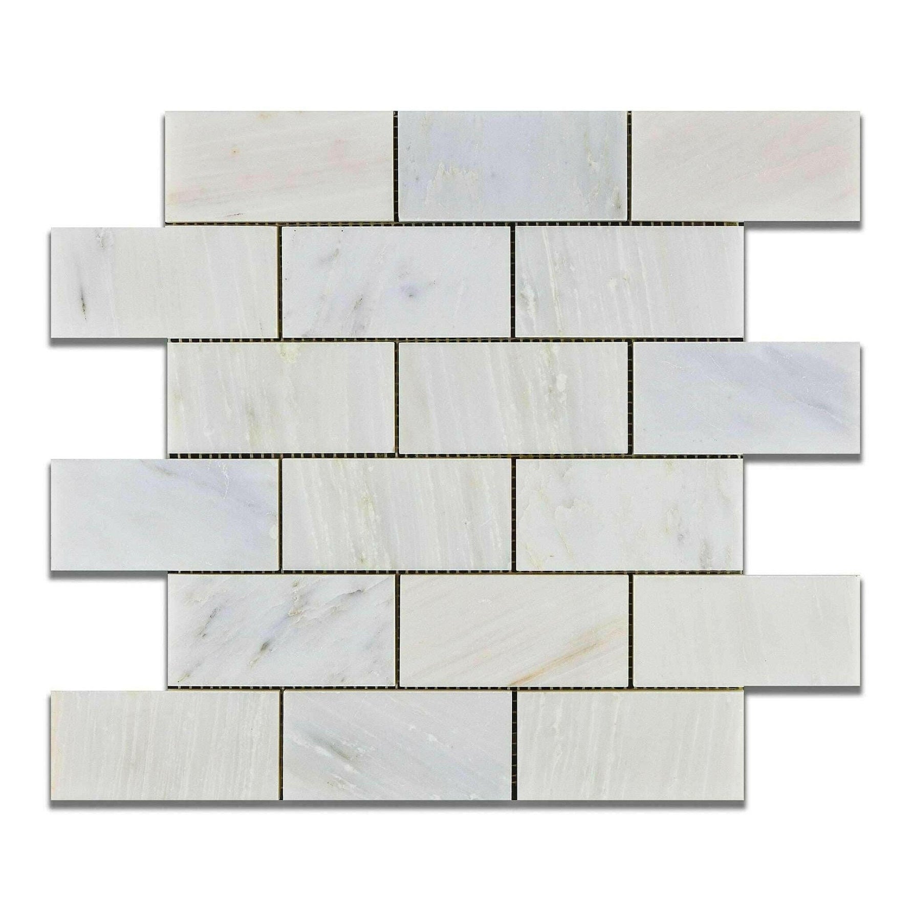 2x4 Oriental White / Asian Statuary Marble Honed Brick Mosaic Tile