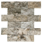 2x4 Silver Travertine Split-Faced Mosaic Tile