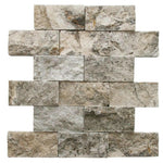 Premium Quality 2" X 4" SILVER TRAVERTINE SPLIT-FACED MOSAIC TILE