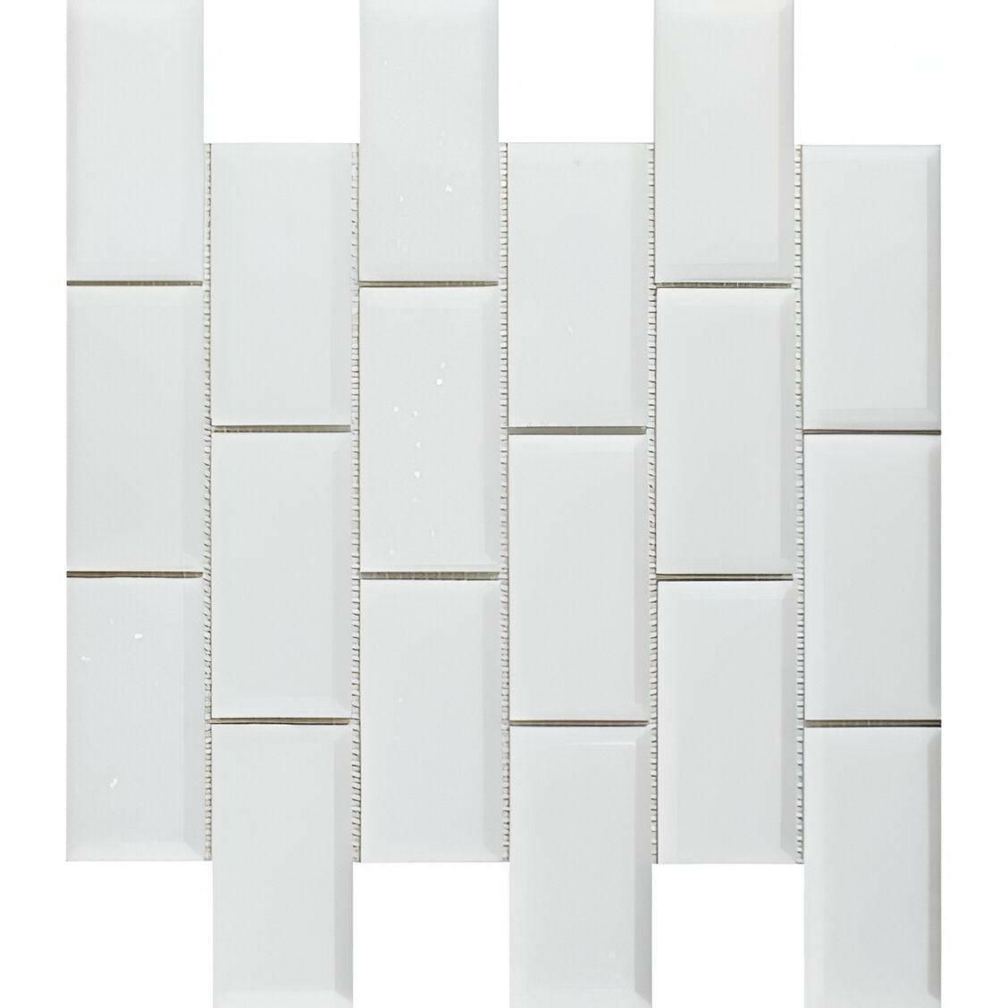 2x4 Thassos White Marble Polished & Beveled Brick Mosaic Tile